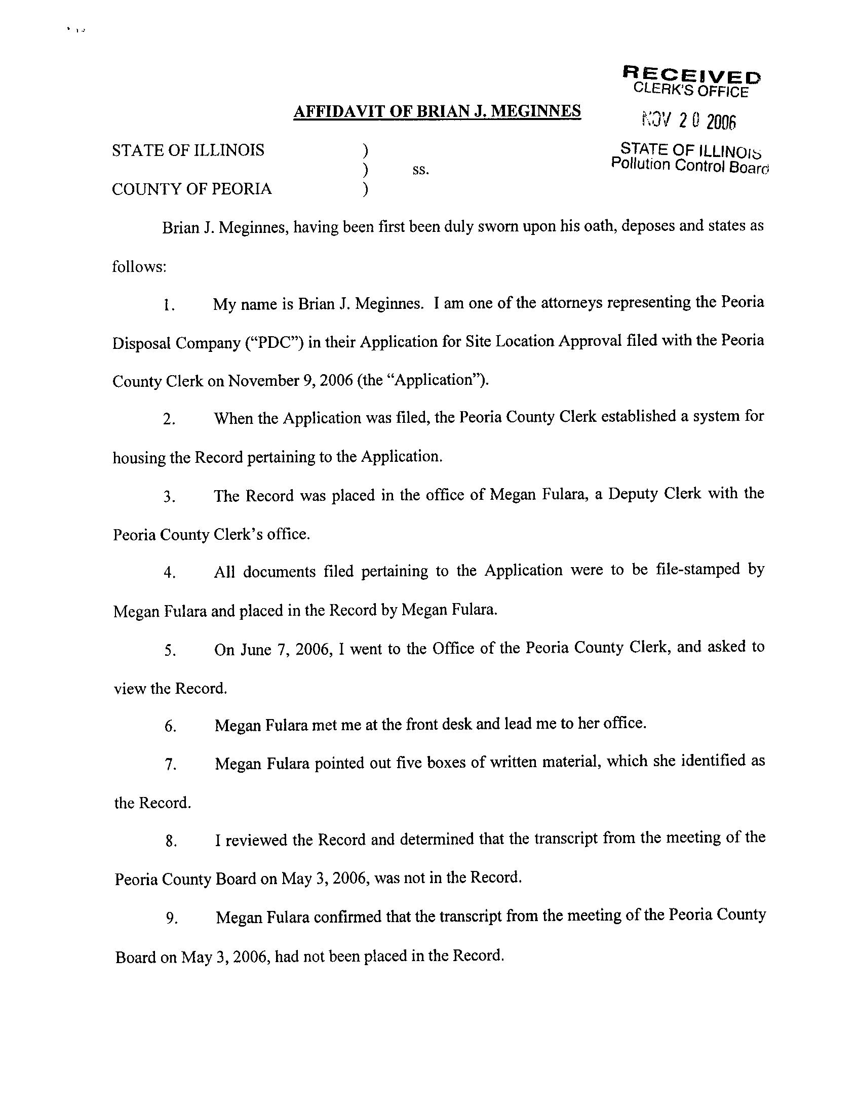 . Meginnes, was filed with the Illinois Pollution Control Board via U