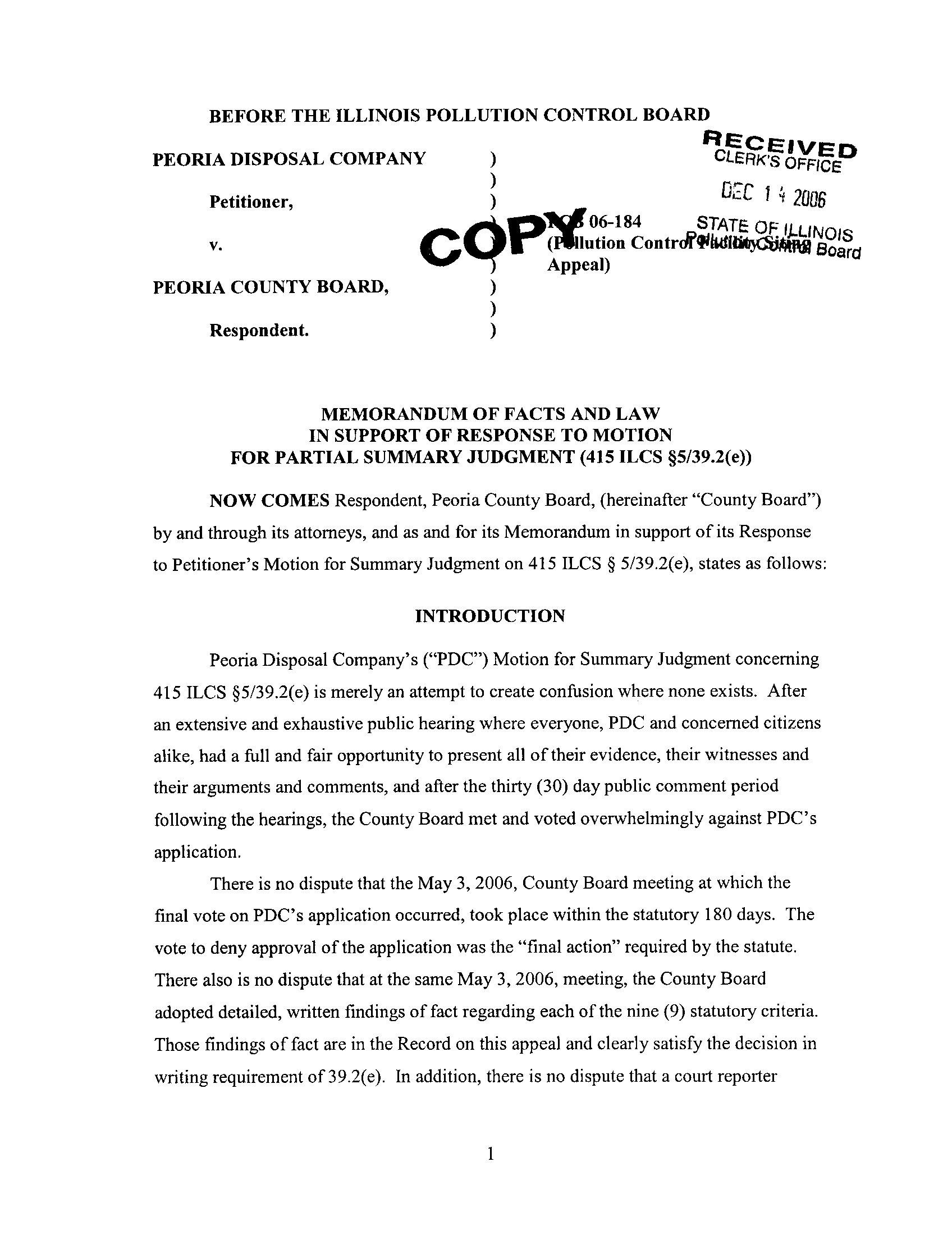 to Petitioner's Motion for Summary Judgment on 415 ILCS § 5/39