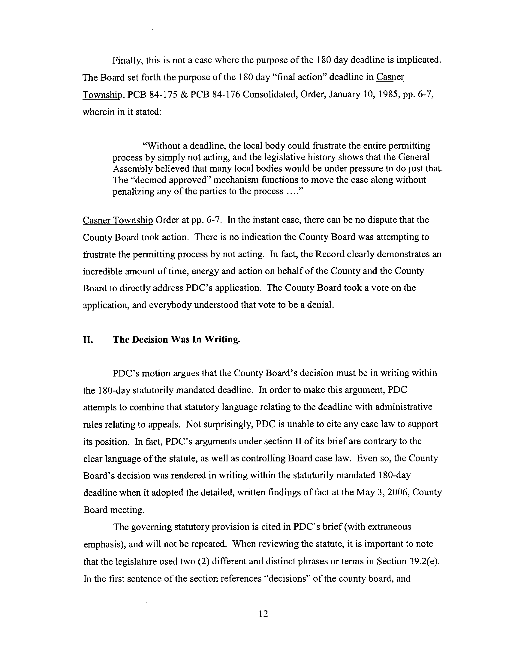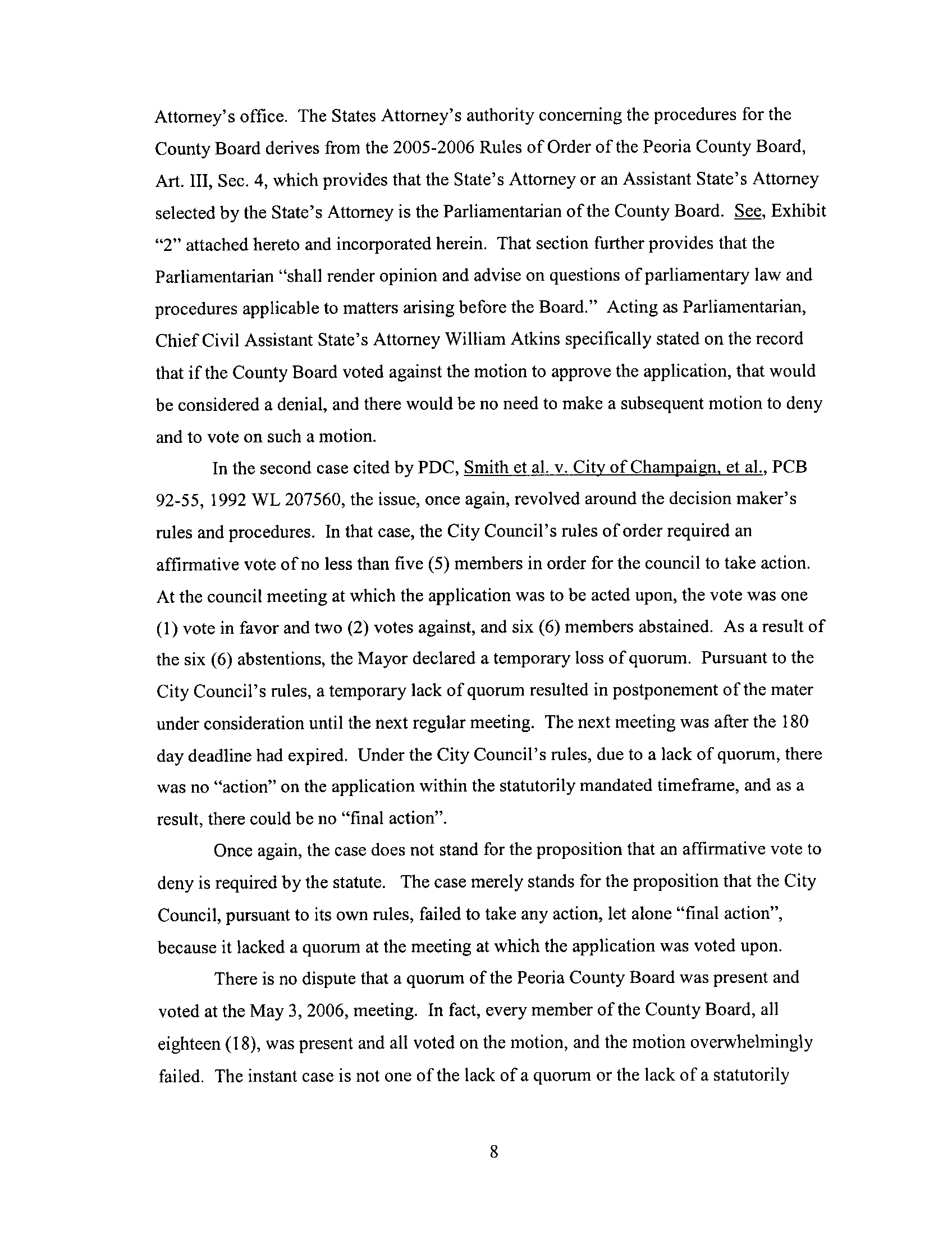 following the hearings, the County Board met and voted overwhelmingly against PDC's