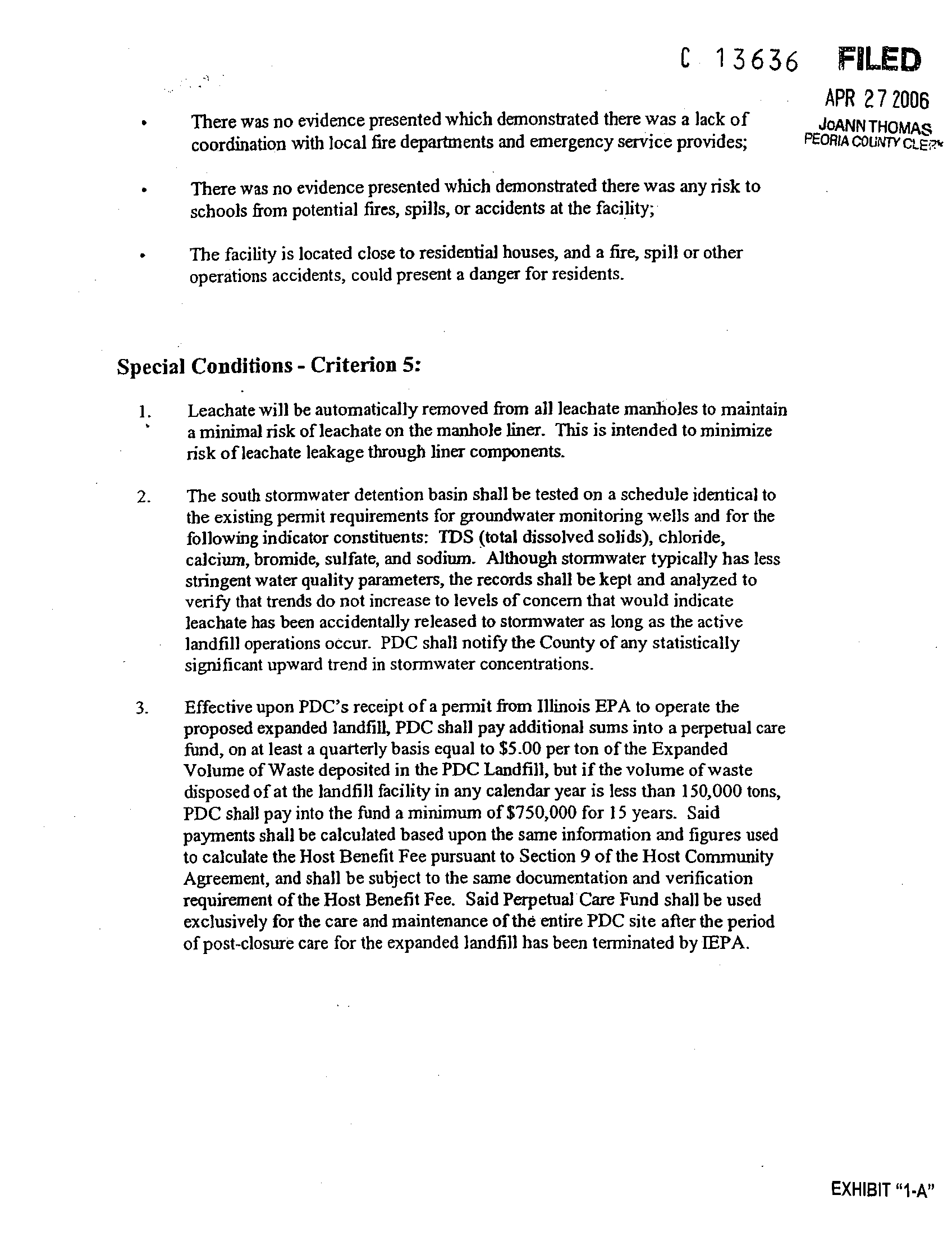At the May 3, 2006, the Peoria County Board approved detailed written