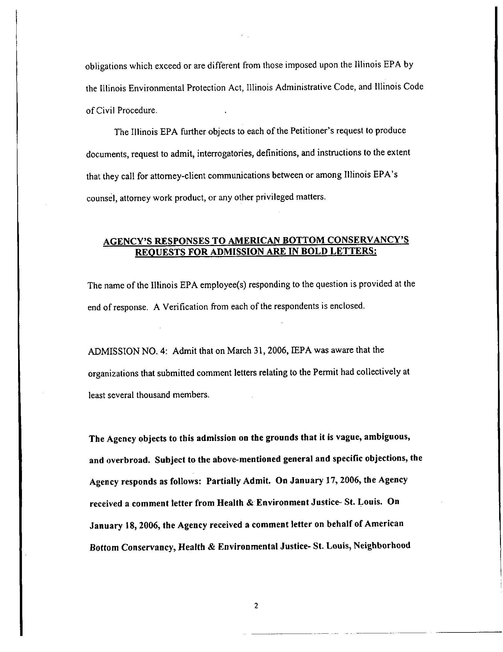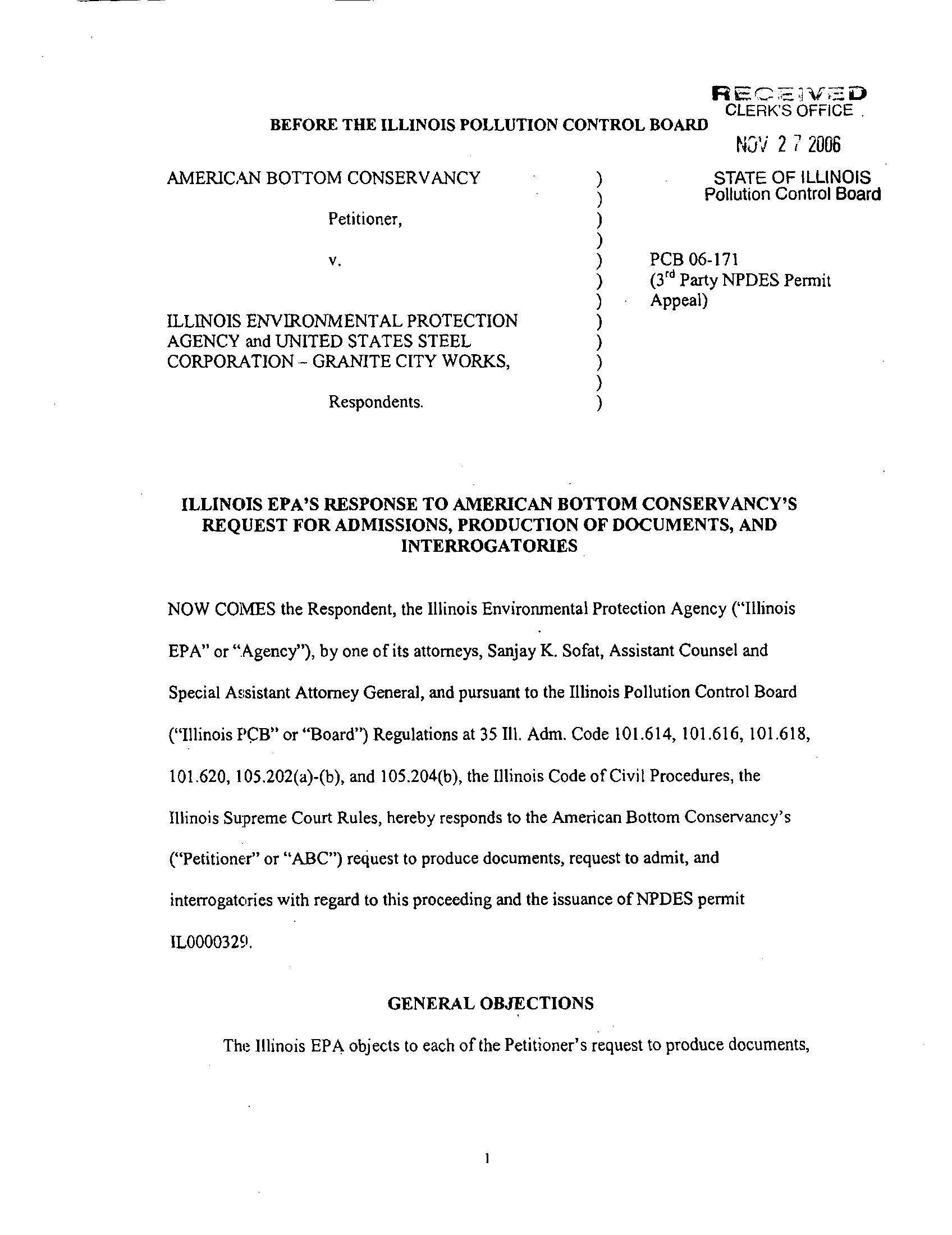 ILLINOIS EPA'S RESPONSE TO AMERICAN BOTTOM CONSERVANCY'S