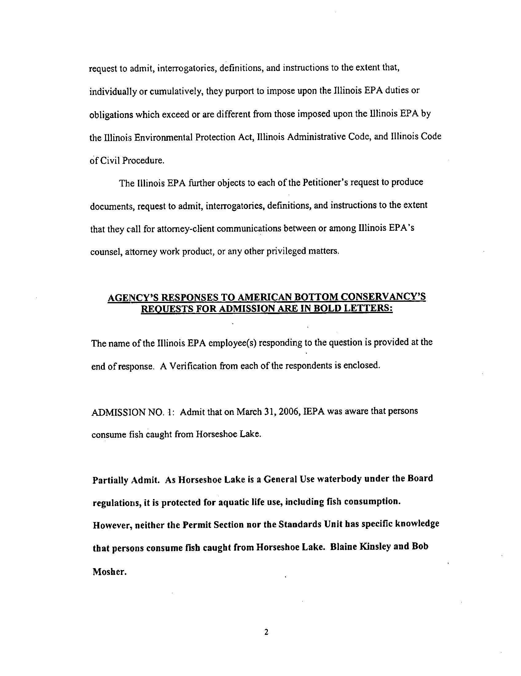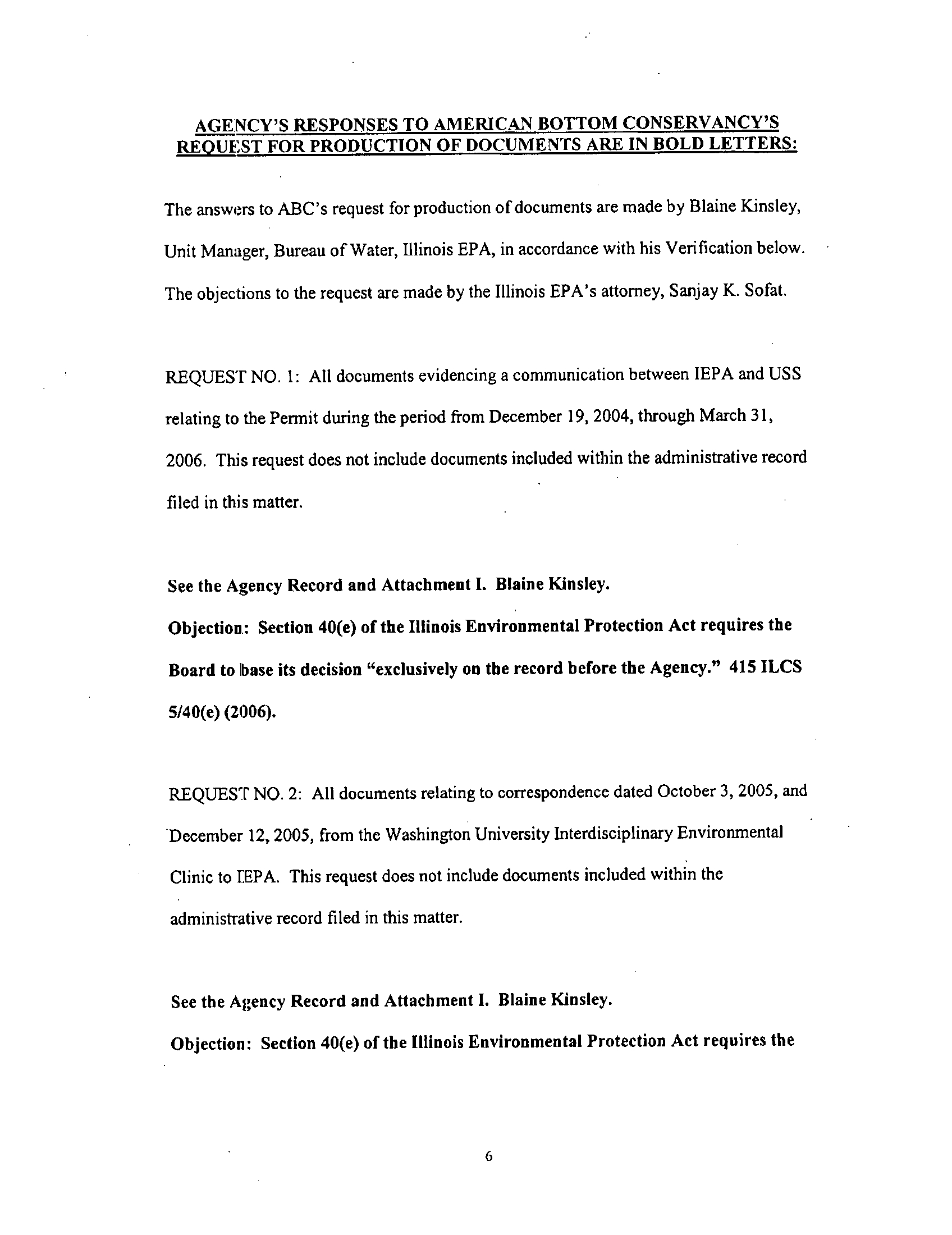 AGENCY'S RESPONSES TO AMERICAN BOTTOM CONSERVANCY'S