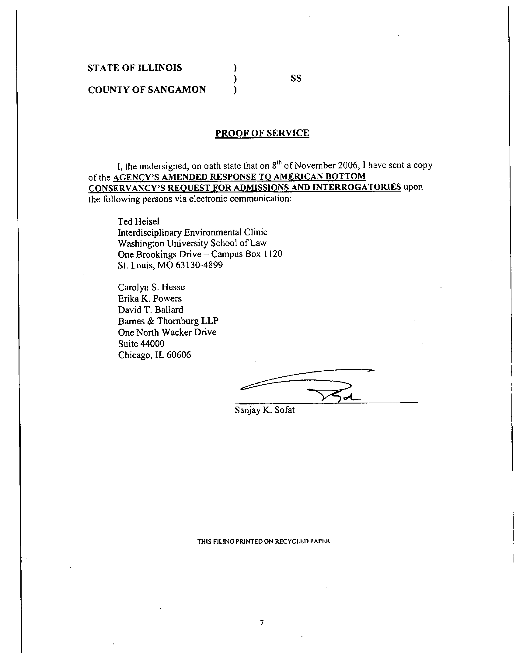copy of the AGENCY'S AMENDED RESPONSE TO AMERICAN BOTTOM