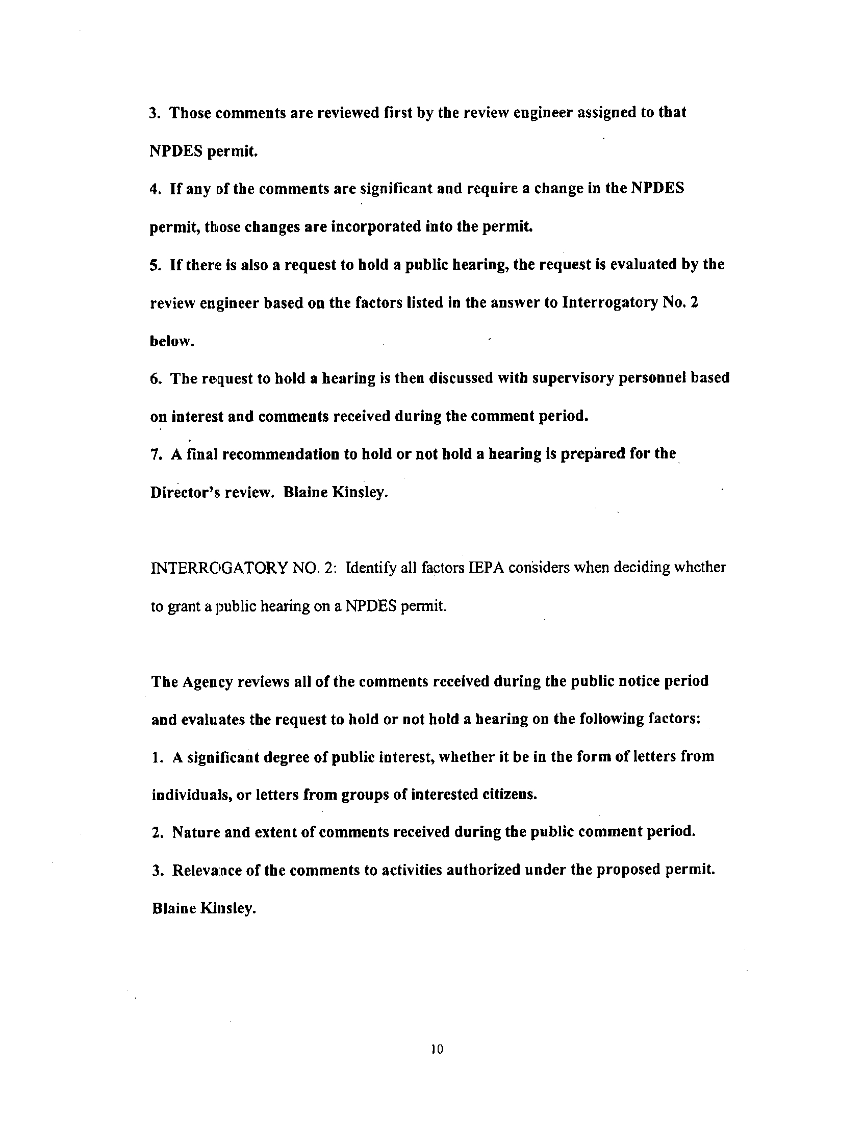 interrogatories with regard to this proceeding and the issuance of NPDES permit