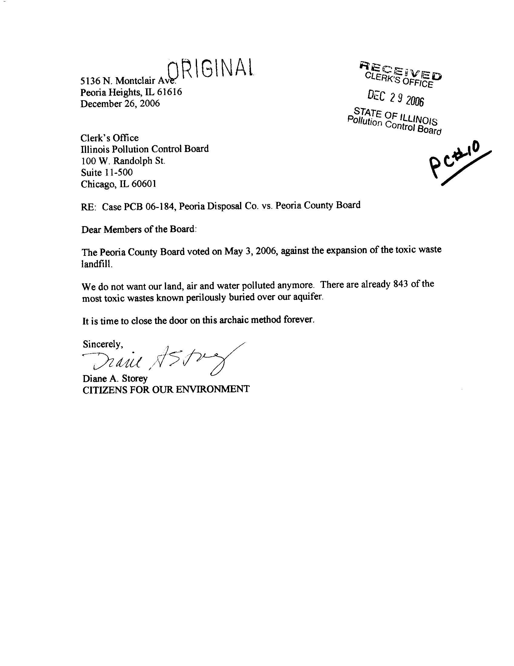RE: Case PCB 06-184, Peoria Disposal Co