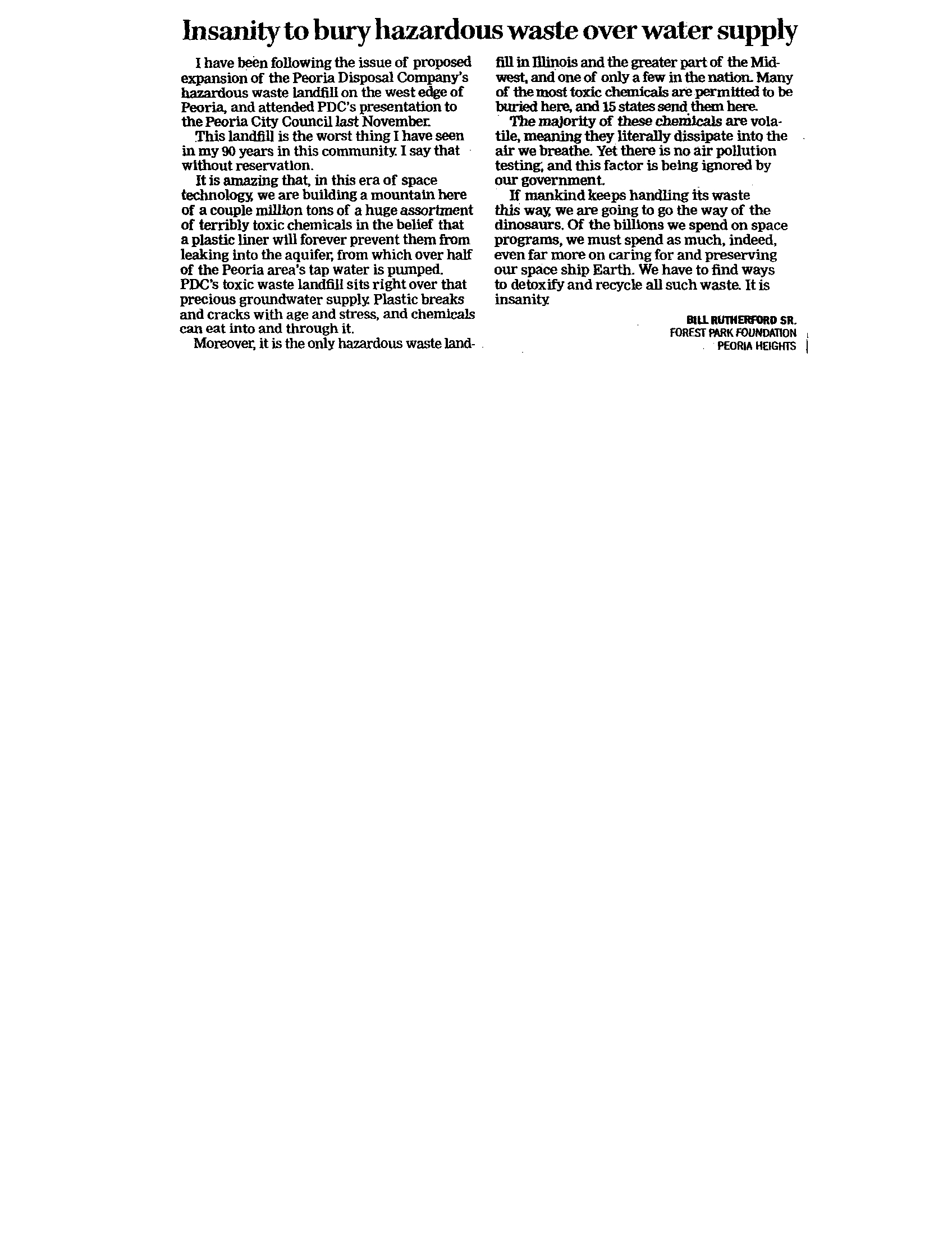 This toxic waste landfill sits over the aquifer which is Peoria area's main