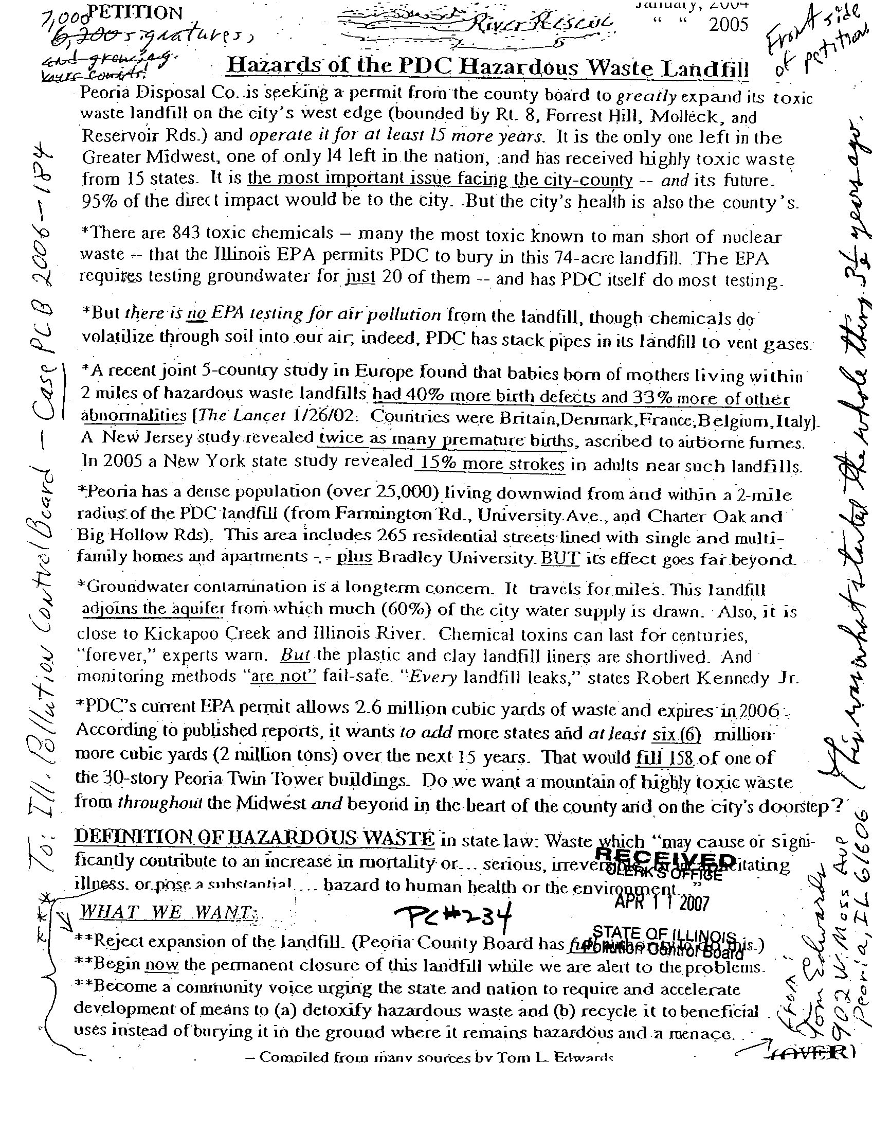 'Reject expansion of the landfill- (Peoria County Board hasj§Aj