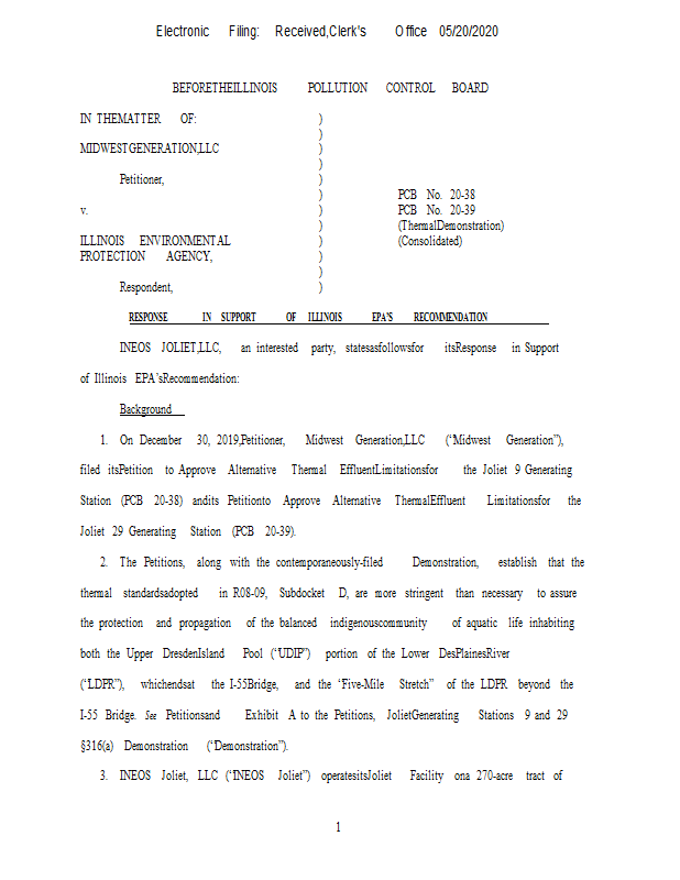 Version 1 20-38 INEOS - Response in Support of IEPA's Recommendation 5.20.20.pdf