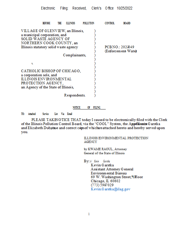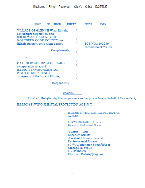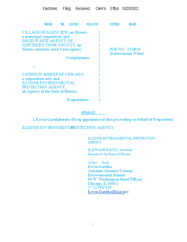 Version 2 23-49 Village of Glenview v. IEPA - NOF & Appearances K. Garstka E. Dubats 10-25-2022.pdf