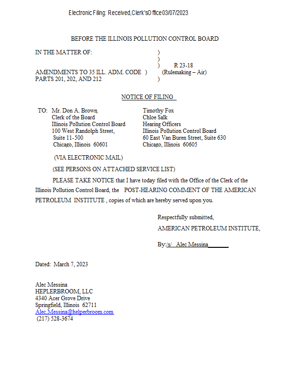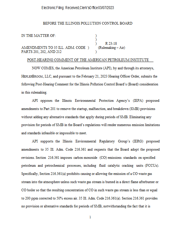Version 1 R23-18 Post-Hearing Comment #12 of the American Petroleum Institute 3-7-23.pdf