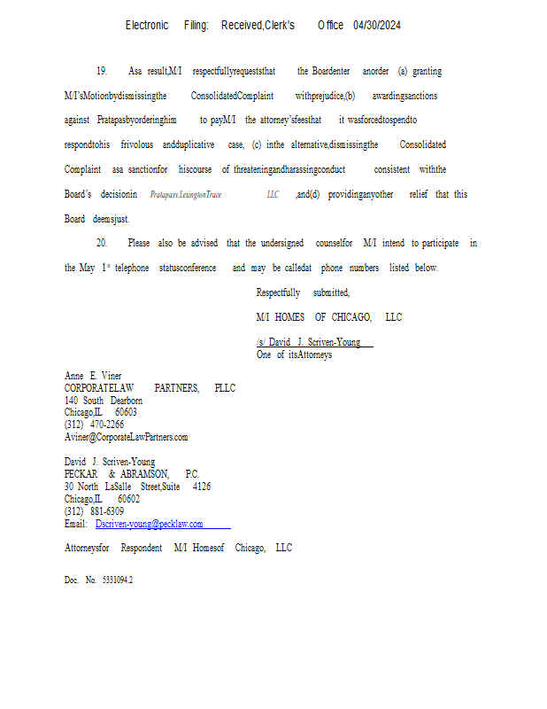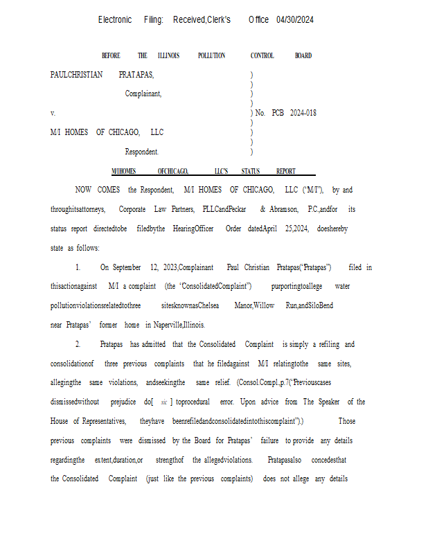 Version 1 24-18 MI Homes of Chicago LLCs Status Report 04-30-24.pdf