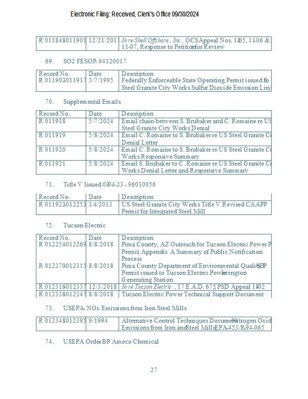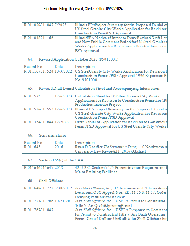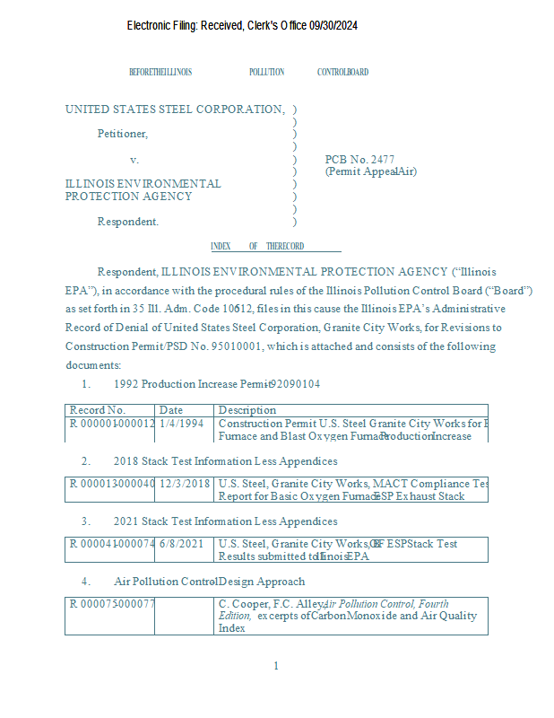 US Steel v. IEPA (001-1128) NOF & Record on Appeal 9-30-24.pdf