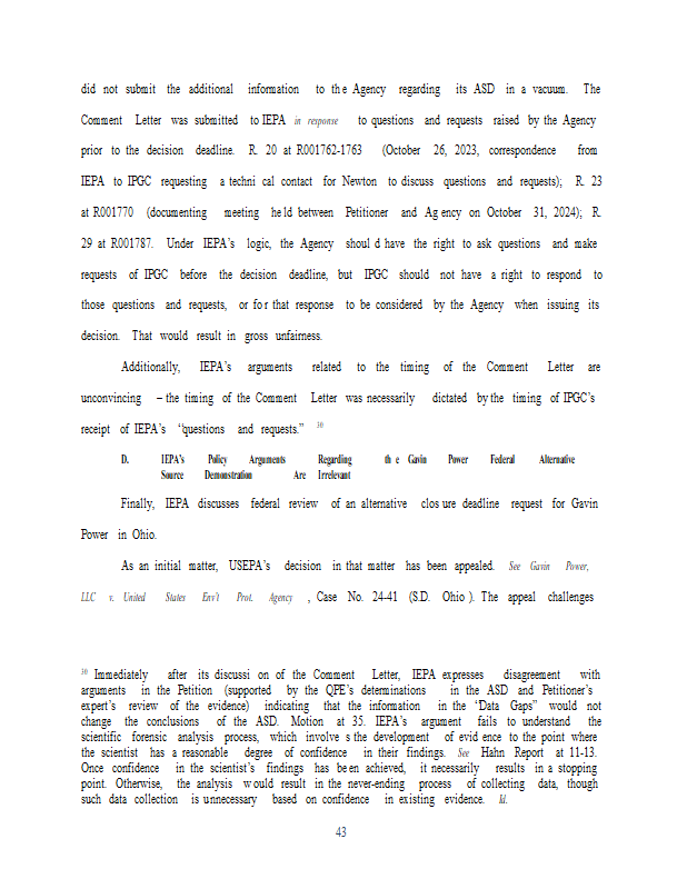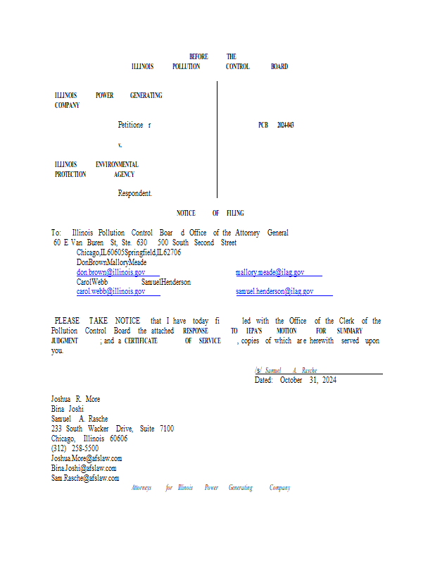 PCB 24-43 - IPGC Resp. to IEPA MSJ 10-31-24.pdf