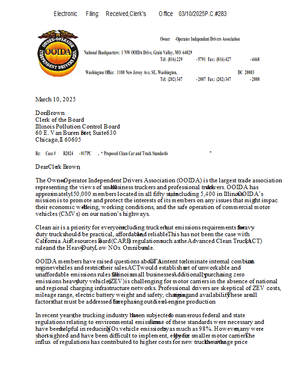 Version 1 Illinois Pollution Control Board R2024-017PC 283 - OOIDA Comments.pdf