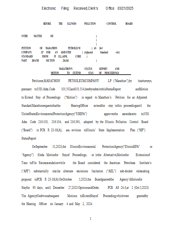 Version 1 Status Report and Motion to Extend Stay of Procedings 3-21-25.pdf