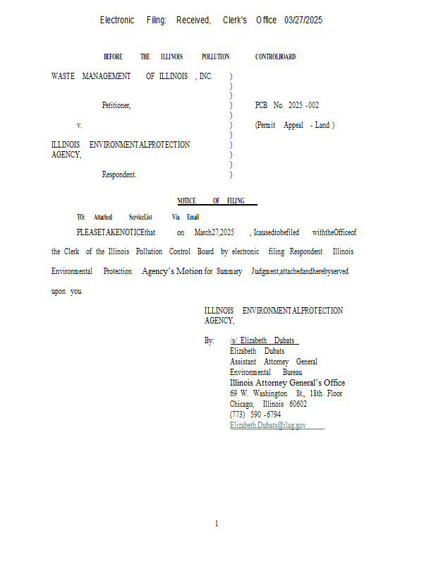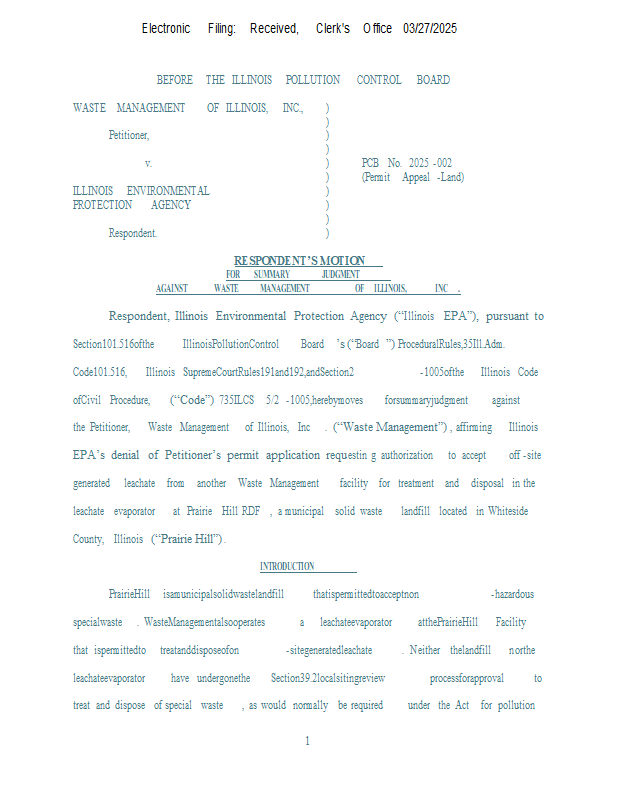 Waste Management v. IEPA (2025-002) NOF & Mtn for Summary Judgment.pdf