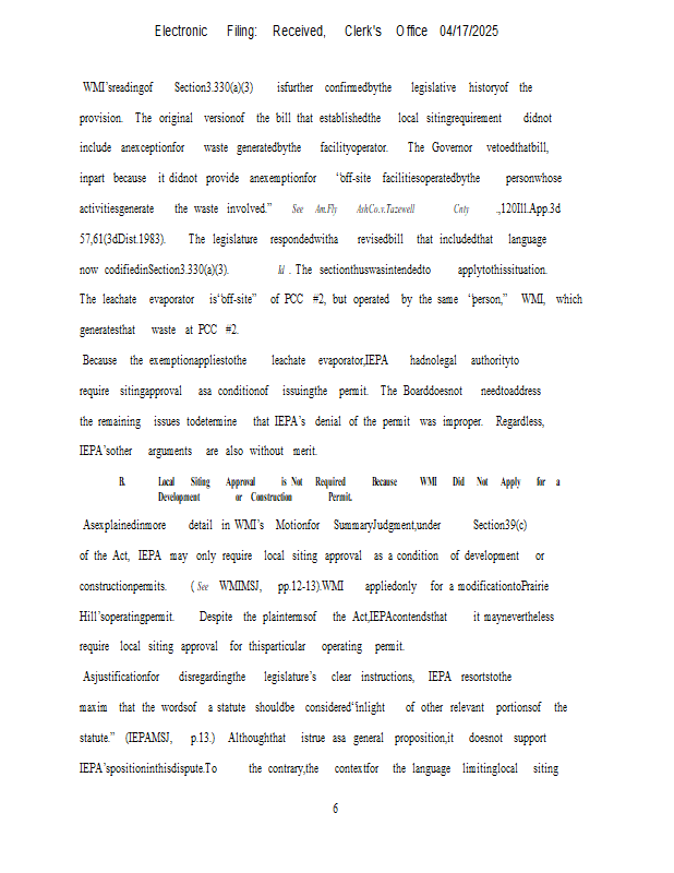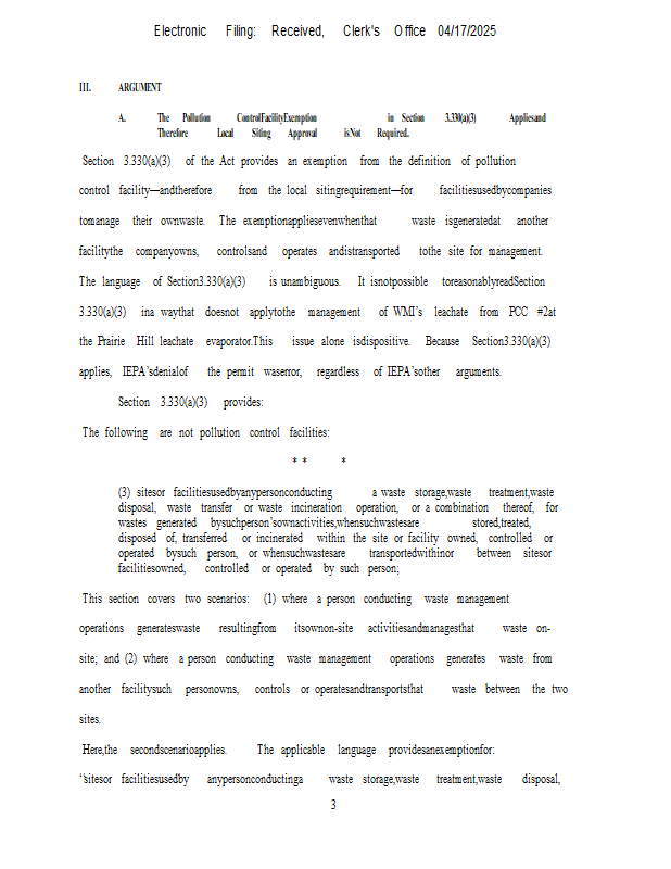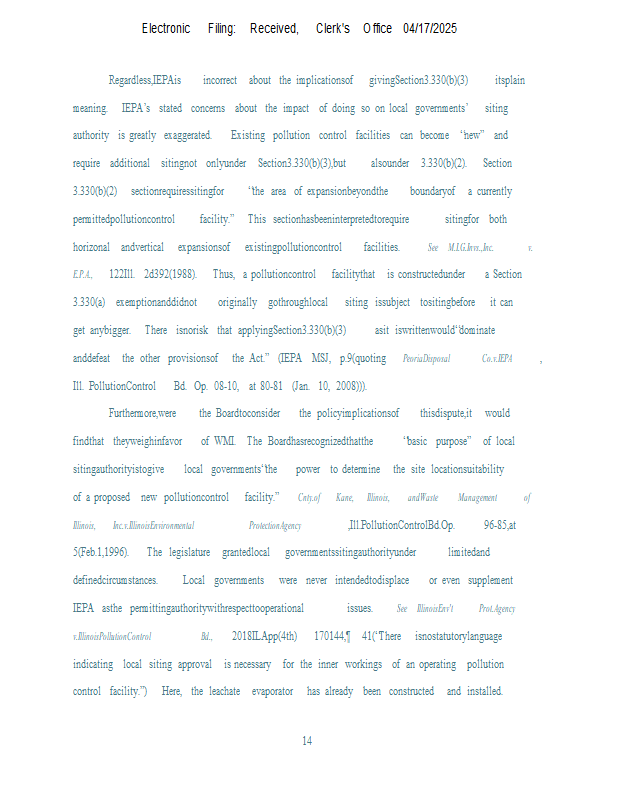 25-2 Waste Management of Illinois, Inc.'s Response to IEPA's MSJ 4-17-25.pdf