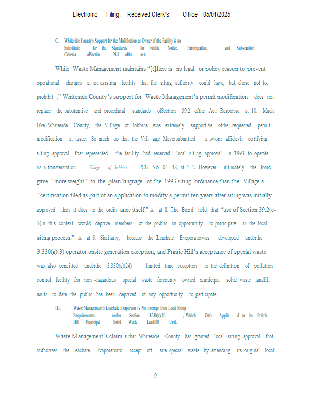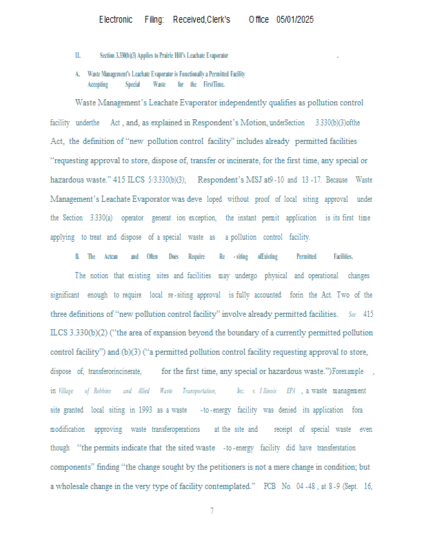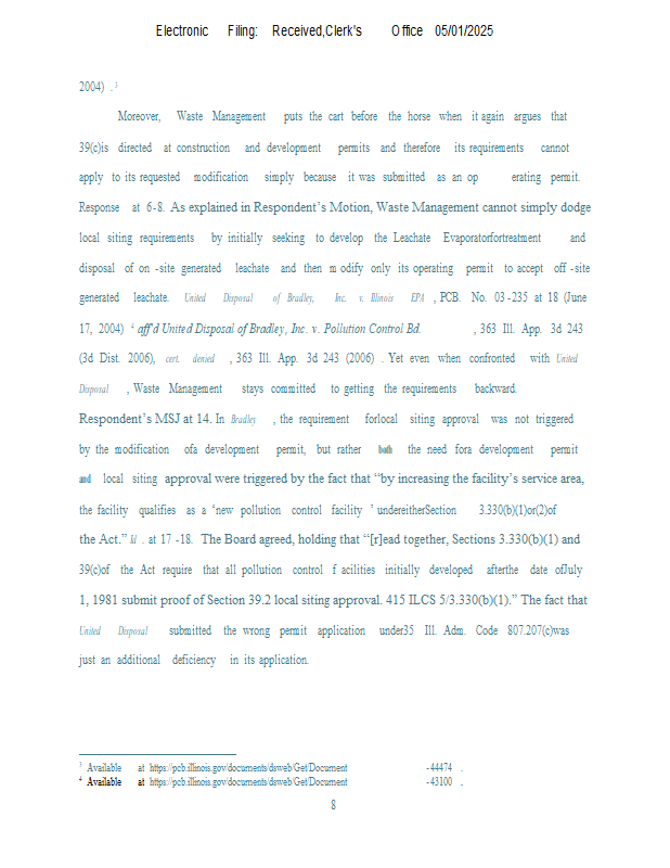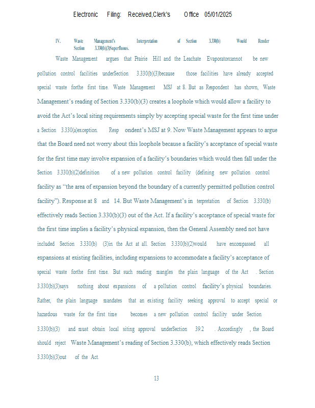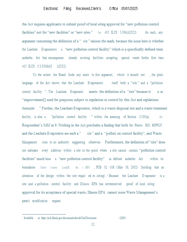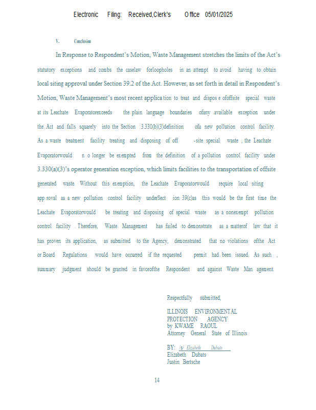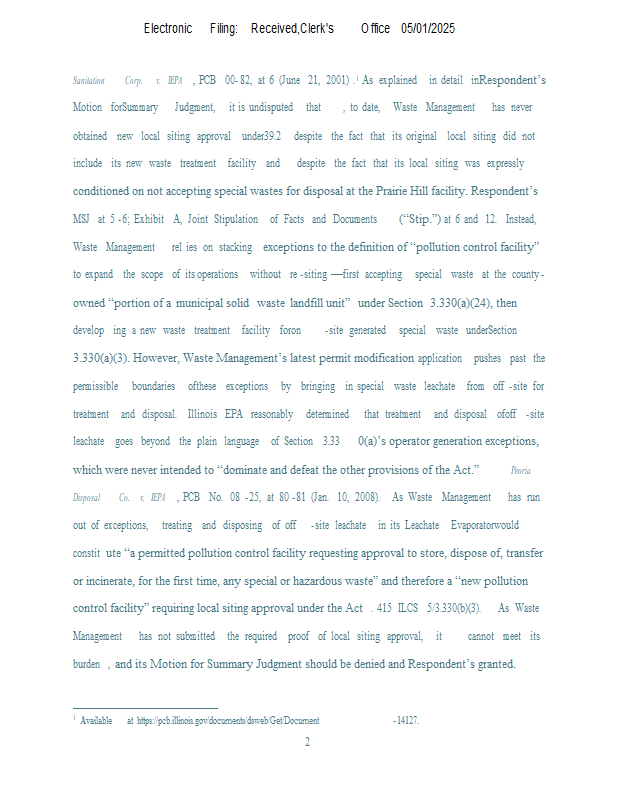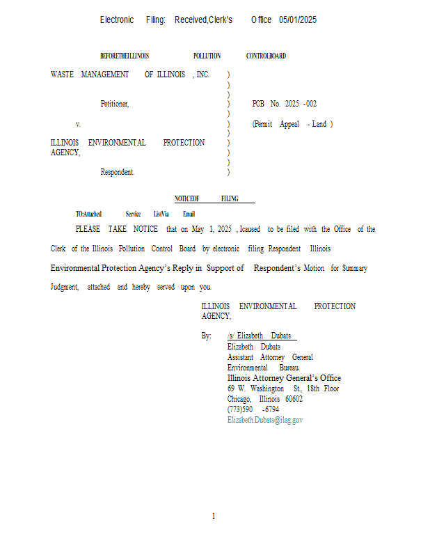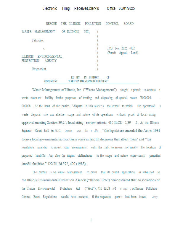 Waste Management v. IEPA (2025-002) NOF & IEPA Reply ISO MSJ 5-1-25.pdf