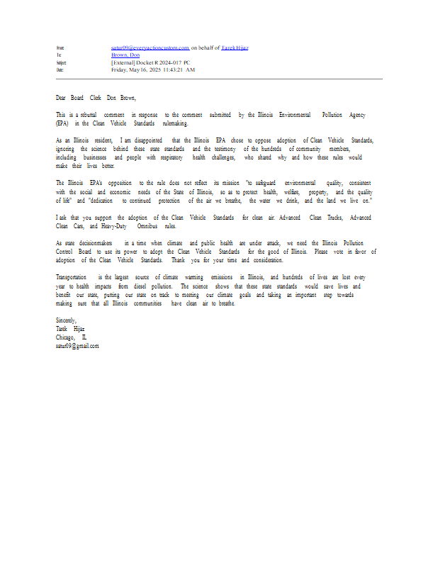 Version 1 IL Pollution Control Board Tarek Hijaz 654 comment 05-16-25.pdf