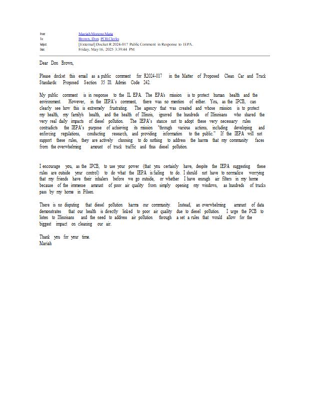 Version 1 IL Pollution Control Board Mariah Moreno 661 comment 05-16-25.pdf