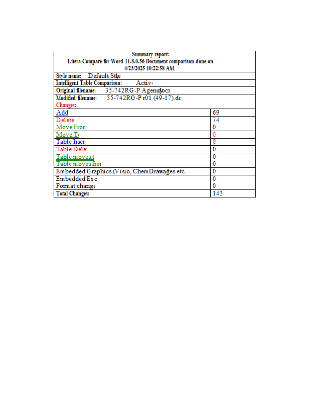 Version 1 Litera Compare Redline - 35-742RG-P Agency and 35-742RG-P r01 (49-17) 4-23-25.pdf