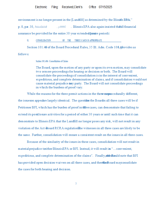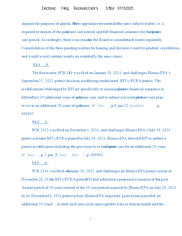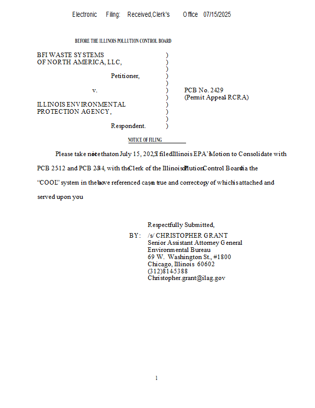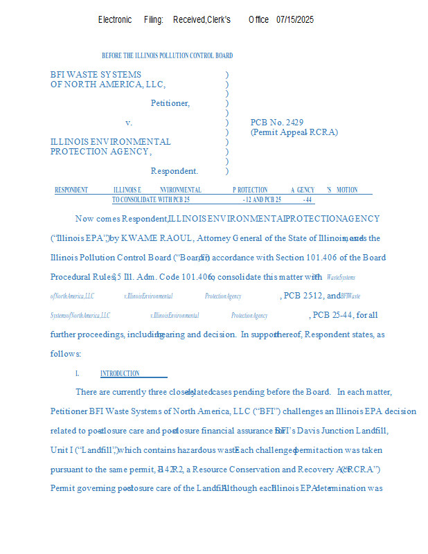 Version 1 BFI Waste Systems v. IEPA (24-29) NOF & Mtn to Consolidate 7-15-25.pdf
