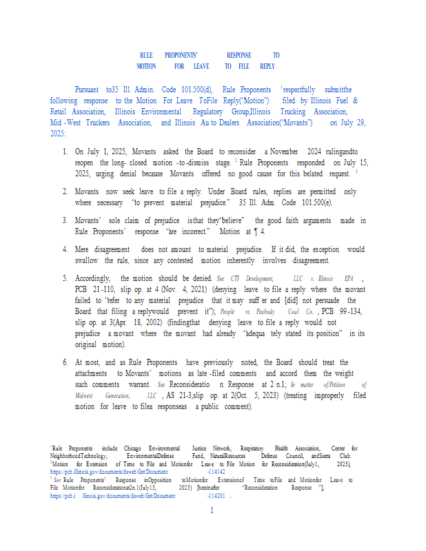 Version 1 Rule Proponents' Response to Motion for Leave to File Reply ISO Motion for Reconsideration_8-5-25.pdf