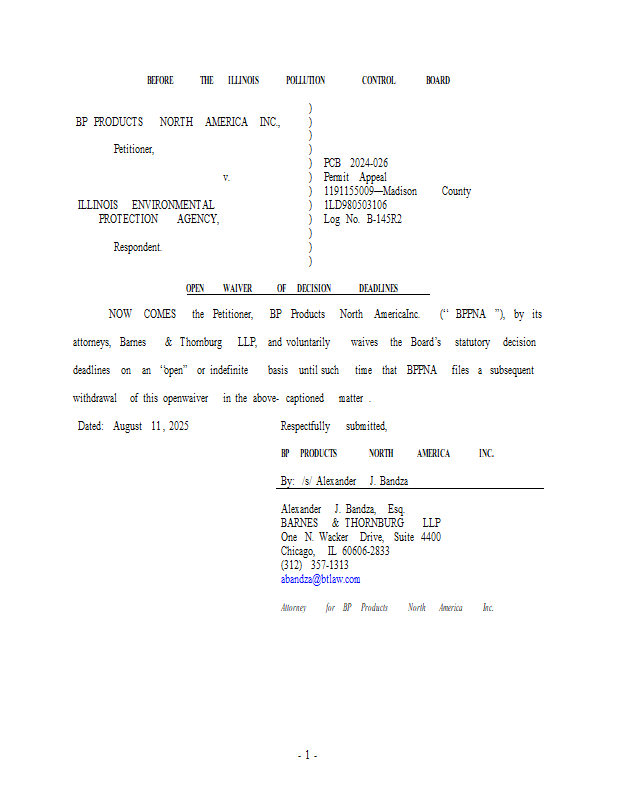 Version 1 2025-08-11 PCB 2024-026 - BP Open Waiver of Statutory Deadlines.pdf