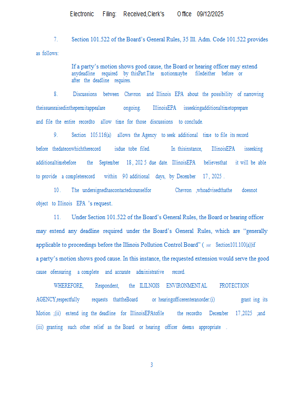 Version 1 Chevron v. IEPA (2015-018) NOF & Second Mtn for Extension 9-12-25 .pdf