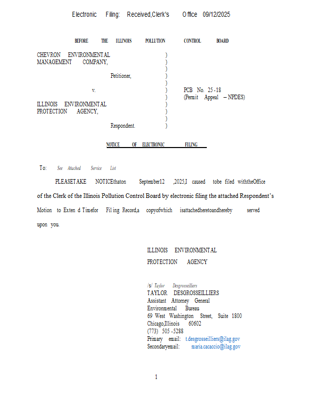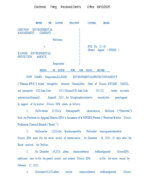 Version 1 Chevron v. IEPA (2015-018) NOF & Second Mtn for Extension 9-12-25 .pdf
