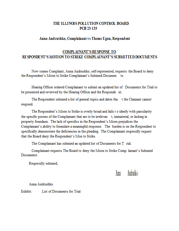 Version 1 2025 - 05 28 25 - COMPLAINT'S RESPONSE TO RESPONDENT'S MOTION TO STRIKE LIST OF DOCUMENTS.pdf