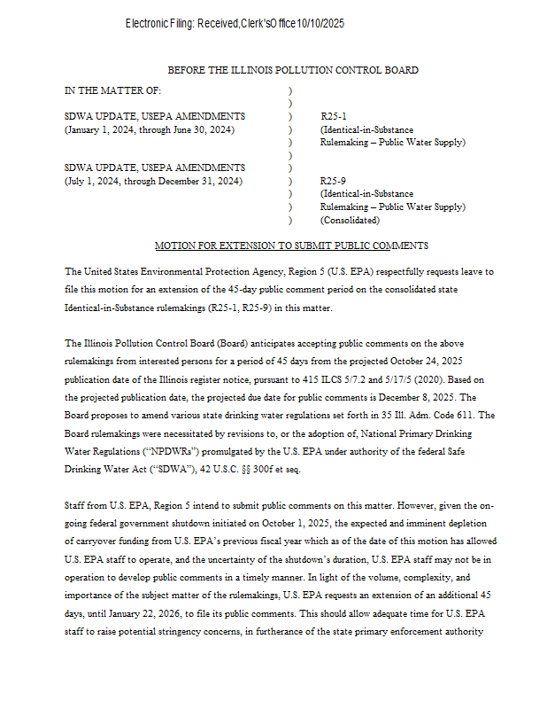 Version 1 R25-01_IL_DWPrimacy_USEPA_Mot_for_Extension_PC_FINAL_2025-10-10.pdf