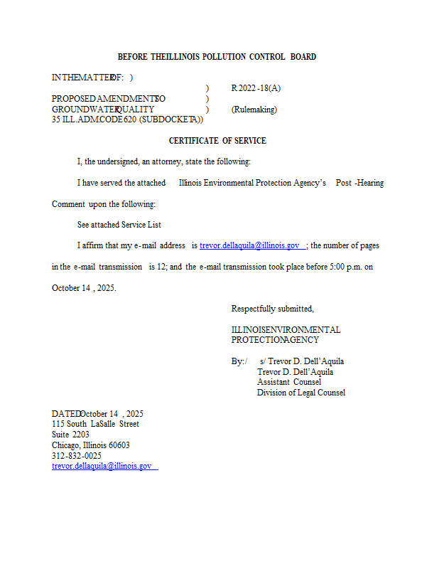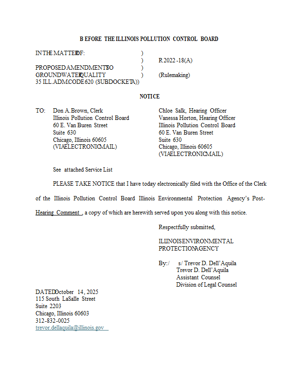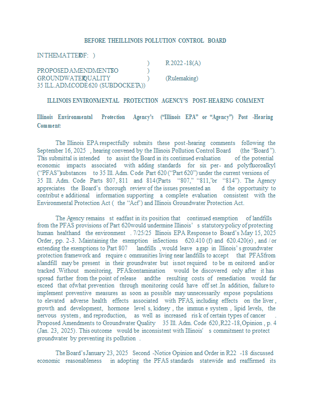 Version 1 R22-18A Illinois EPA Post-Hearing Comment 10-14-25.pdf