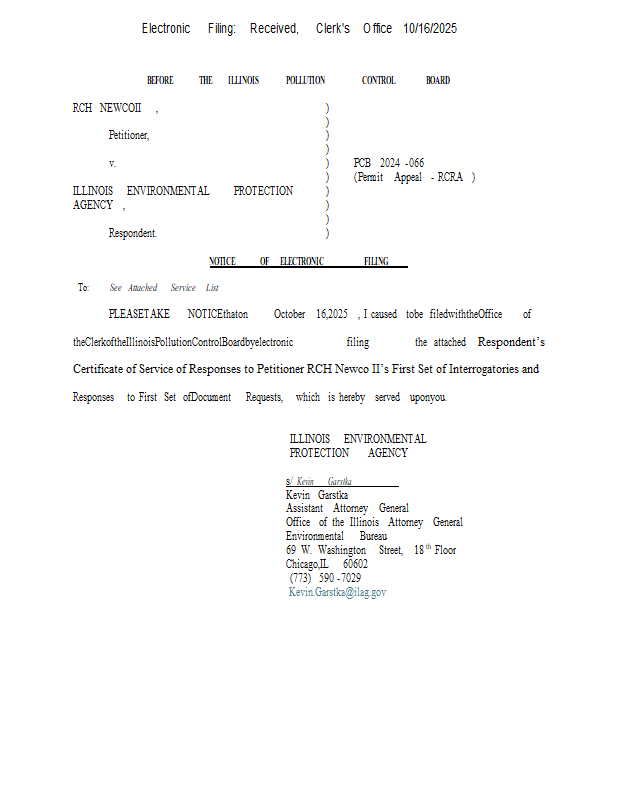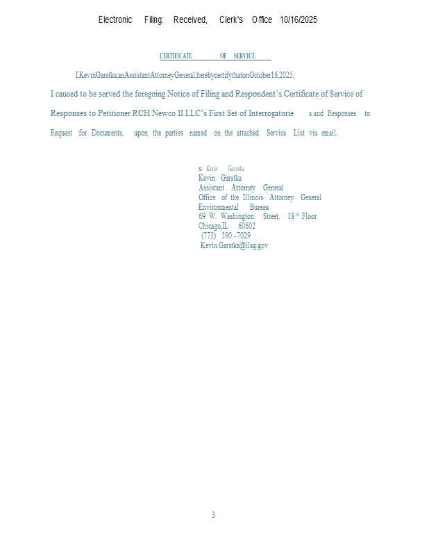 Version 2 RCH Newco II v. IEPA (2024-066) NOF & Certificate of Service of Discovery 10.16.2025.pdf