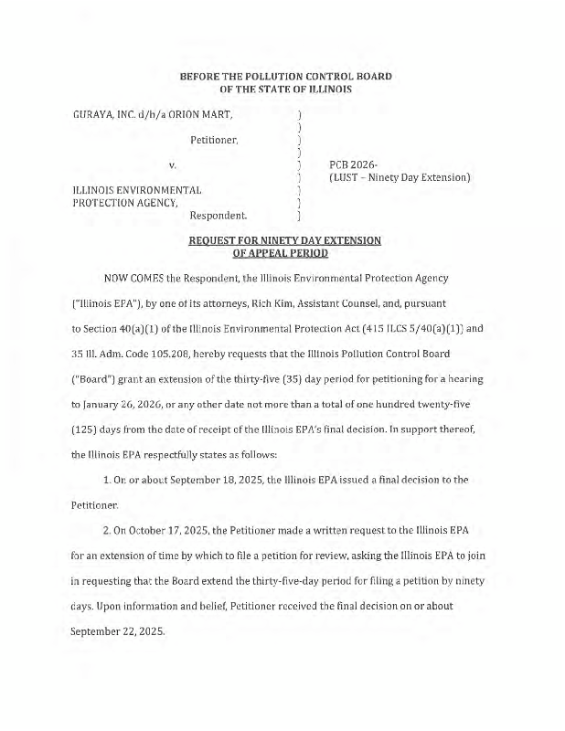 Version 1 PCB 26-32 Guraya Inc Request for 90 Day Extension 10-27-25.pdf