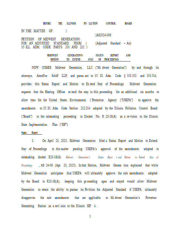Version 1 AS24-06 - MWG Status Report and Mtn for Stay (10-30-25).pdf