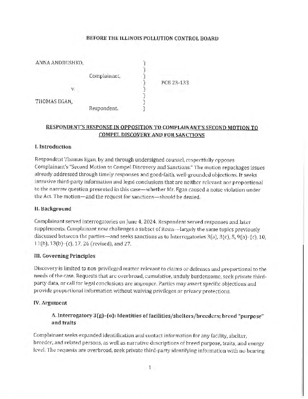Version 2 Resp's Response in Opposition to Compl's 2nd Motion to Compel 11-3-25.pdf