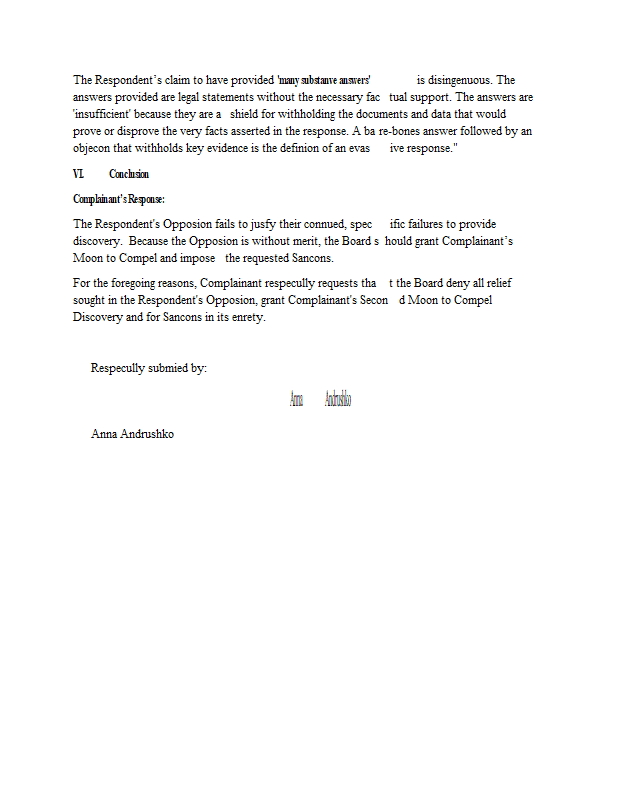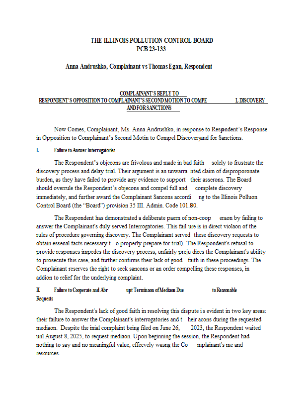 Version 1 2025 - 11 10 25 - COMPLAINTANT'S REPLY TO RESPONDENT'S OPPOSITON TO SECOND MOTION TO COMPEL.pdf