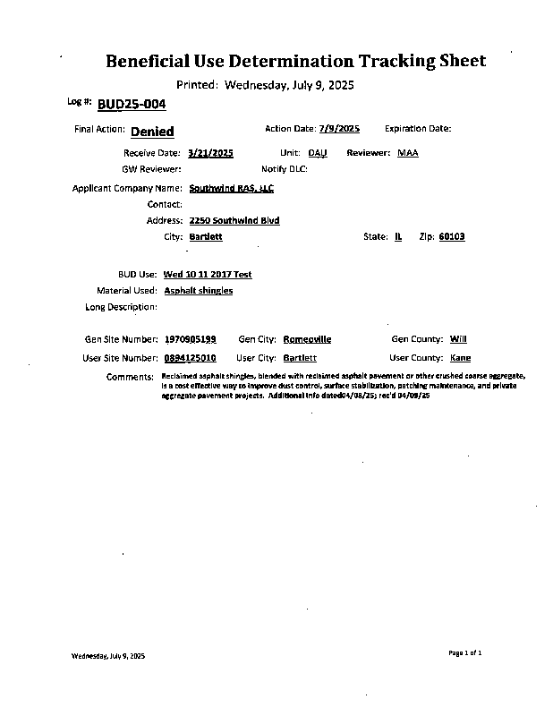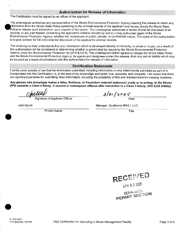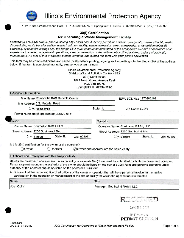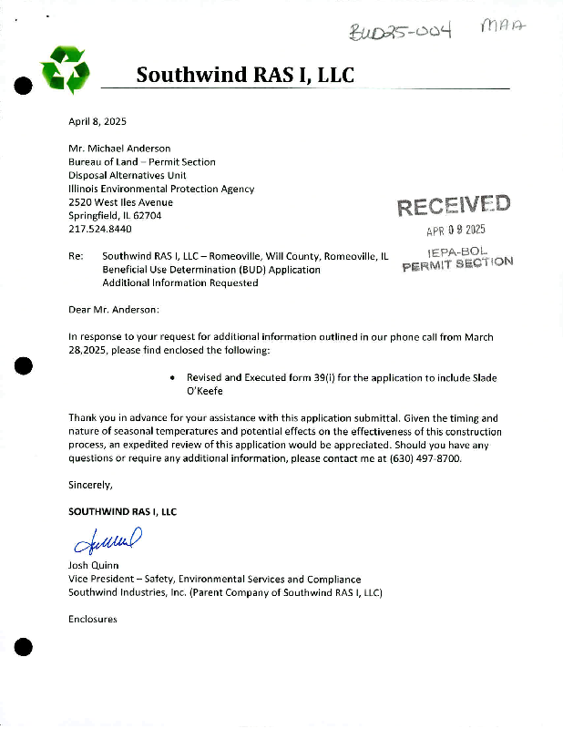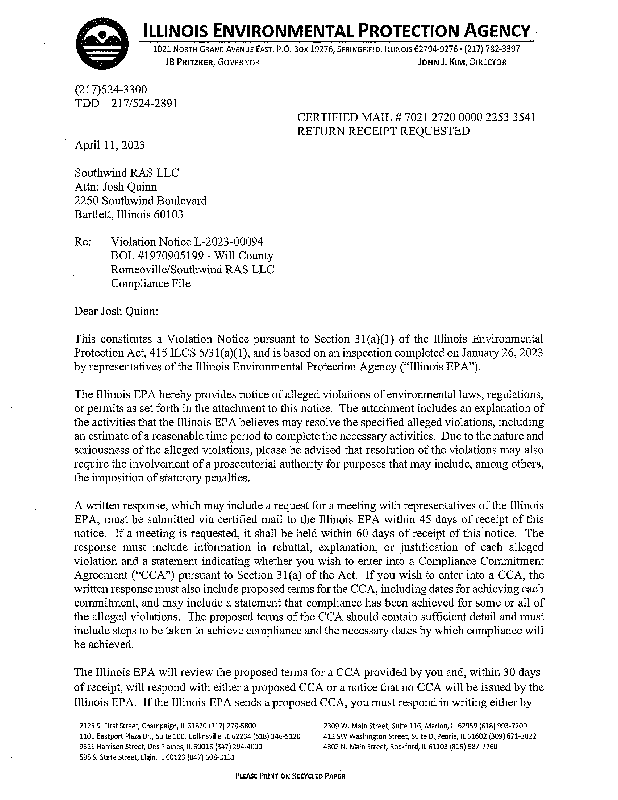Southwind RAS I LLC v. IEPA (2026-014) NOF & Certification of Record on Appeal 11-12-25.pdf