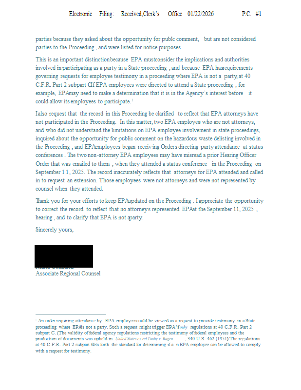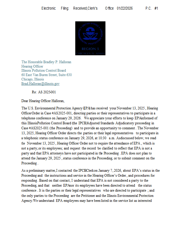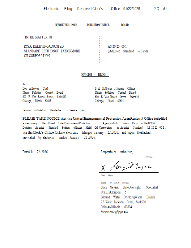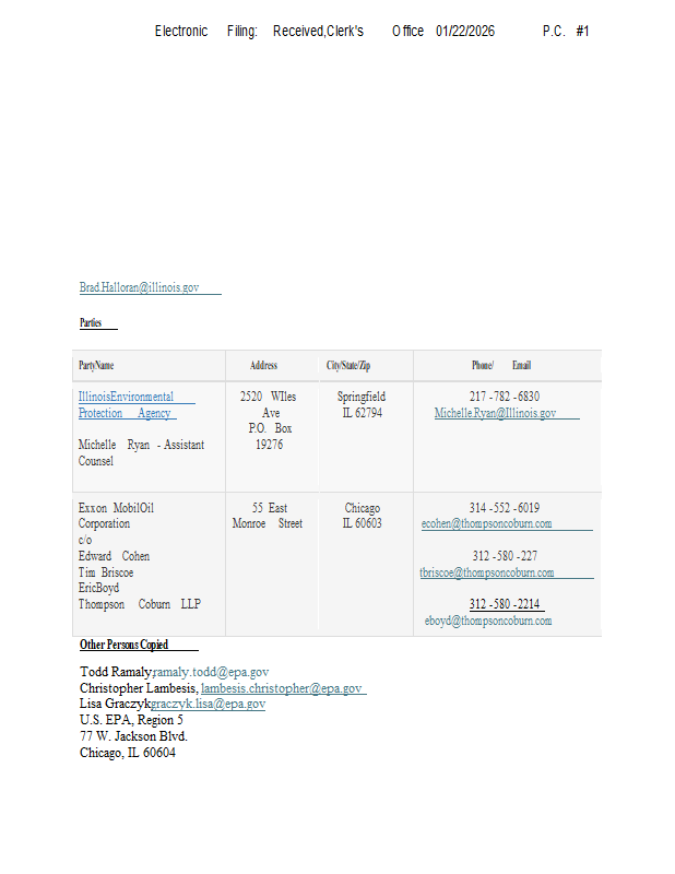 Version 1 ExxonMobilAS2025_001 IPCBhearingofficerorderresponse_01222026.pdf