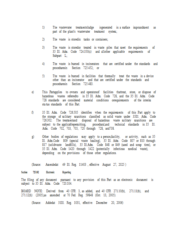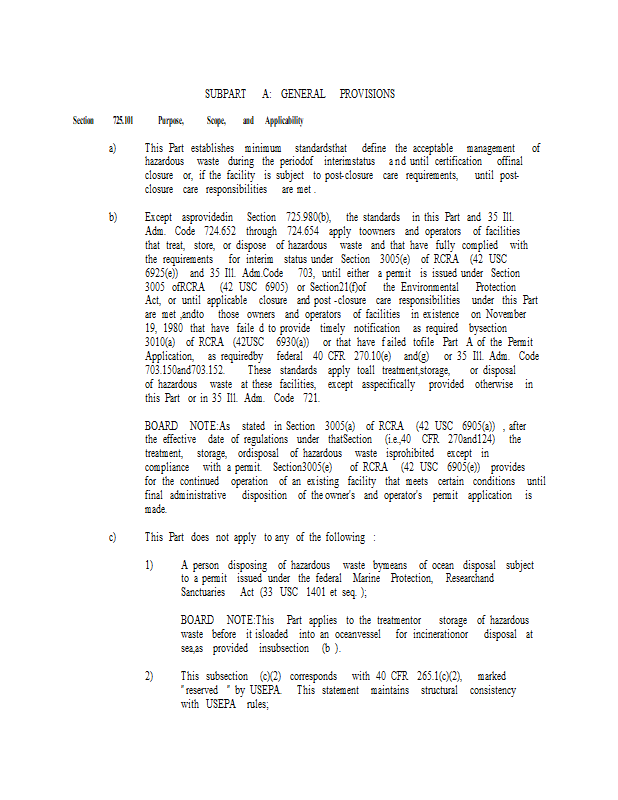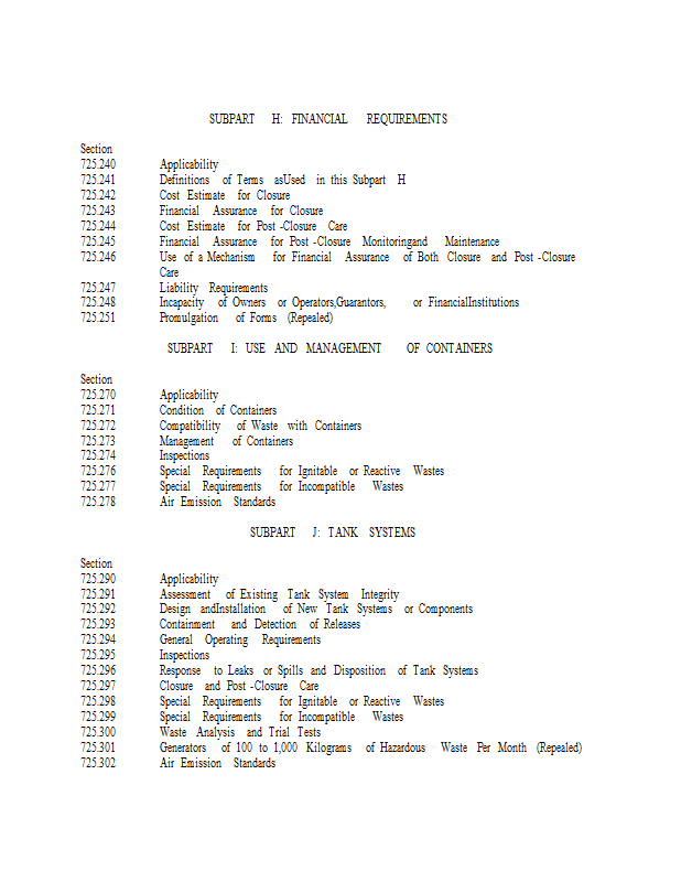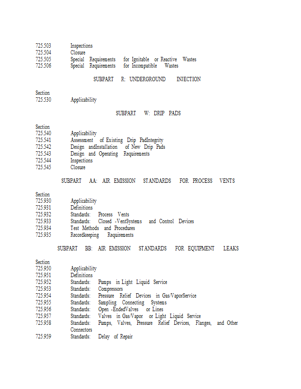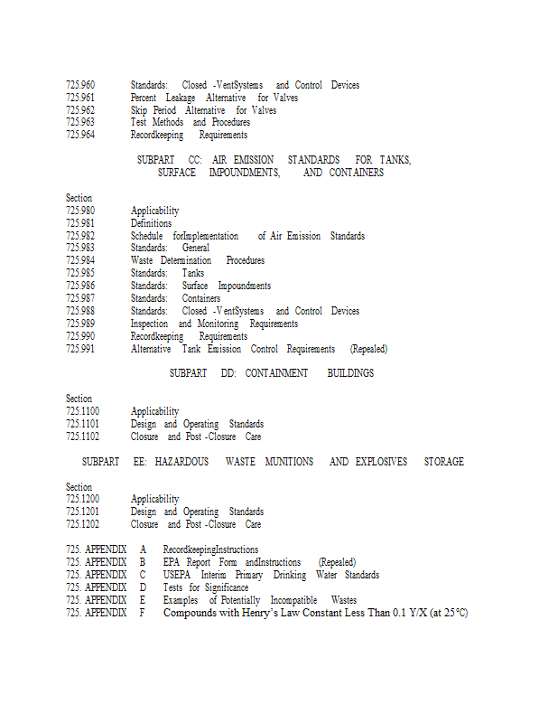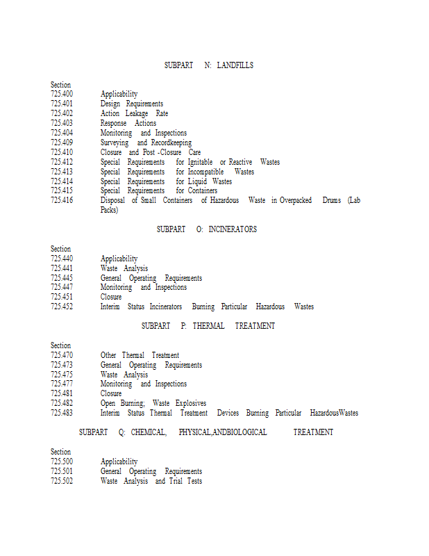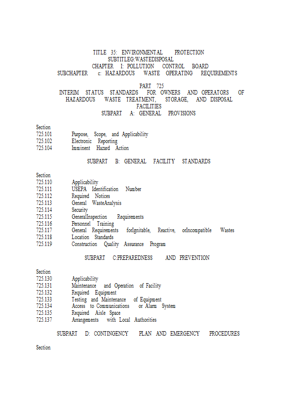 PART 725 - INTERIM STATUS STANDARDS FOR OWNERS AND OPERATORS OF HAZARDOUS WASTE TREATMENT, STORAGE, AND DISPOSAL FACILITIES