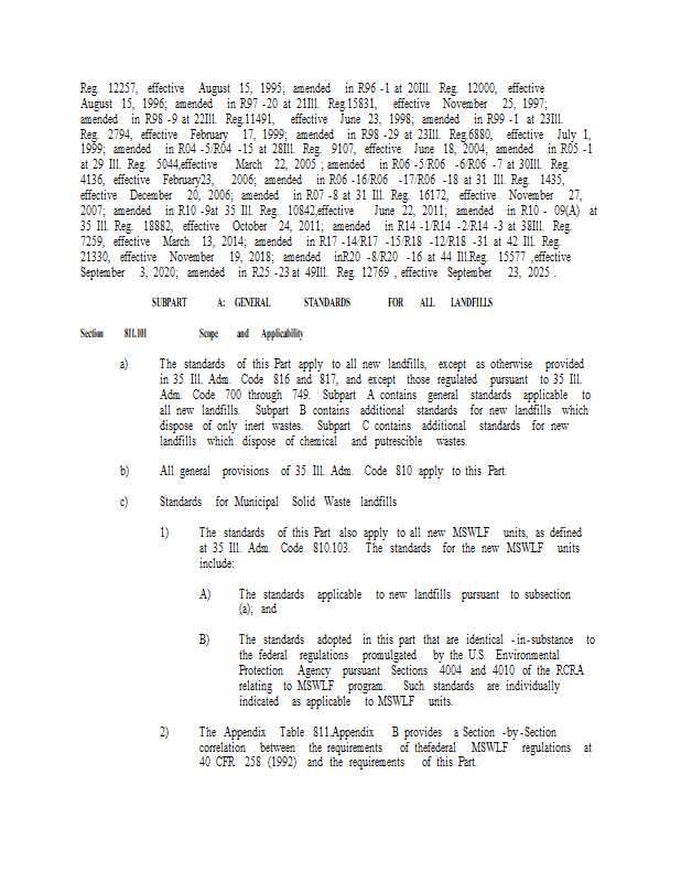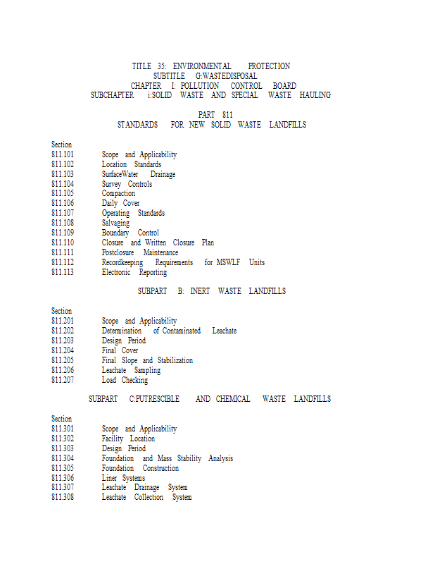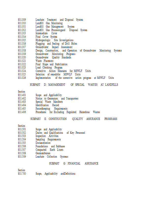 PART 811 - STANDARDS FOR NEW SOLID WASTE LANDFILLS