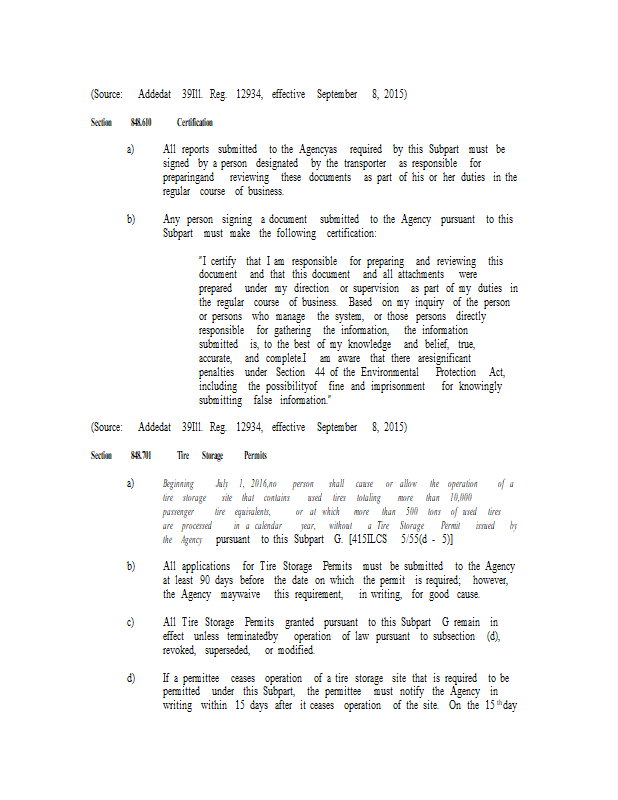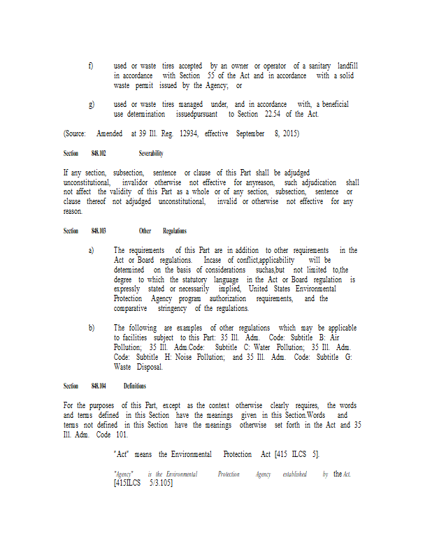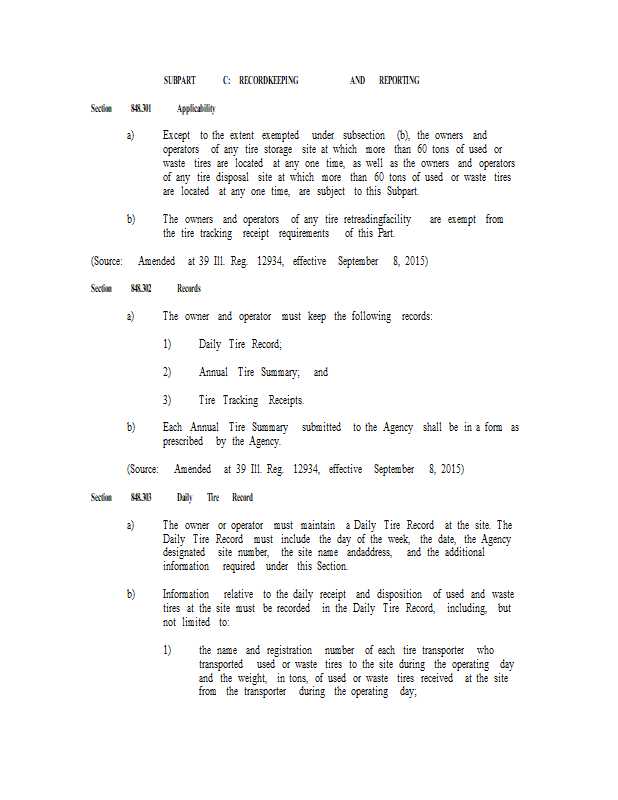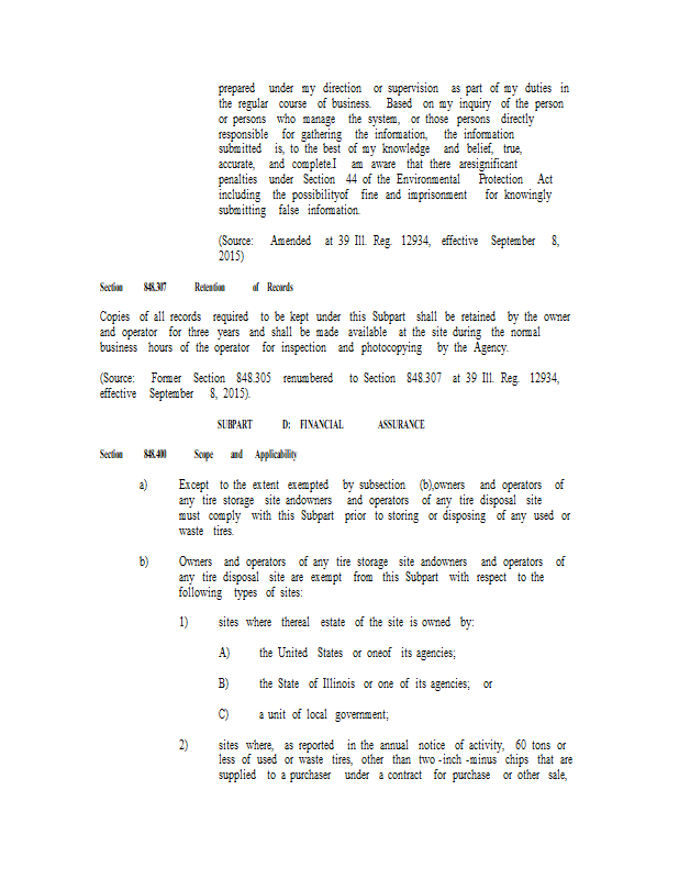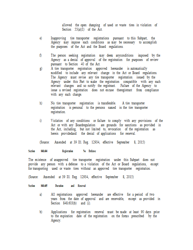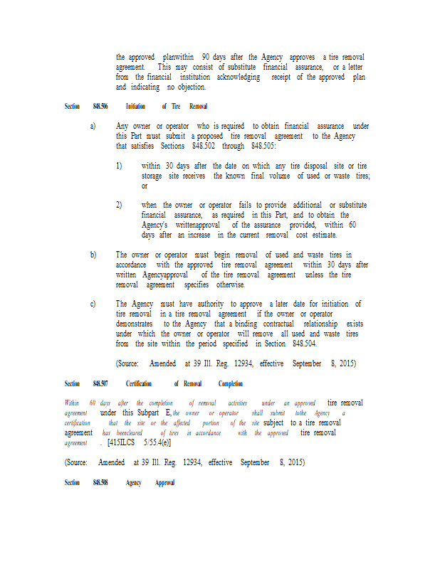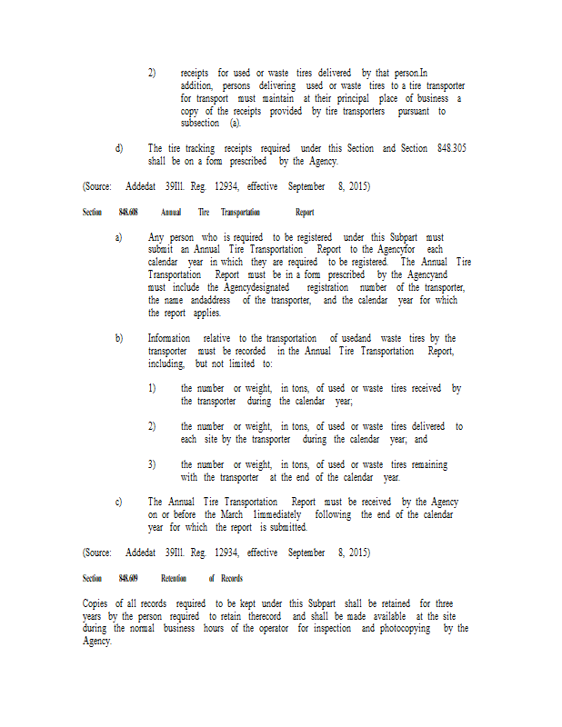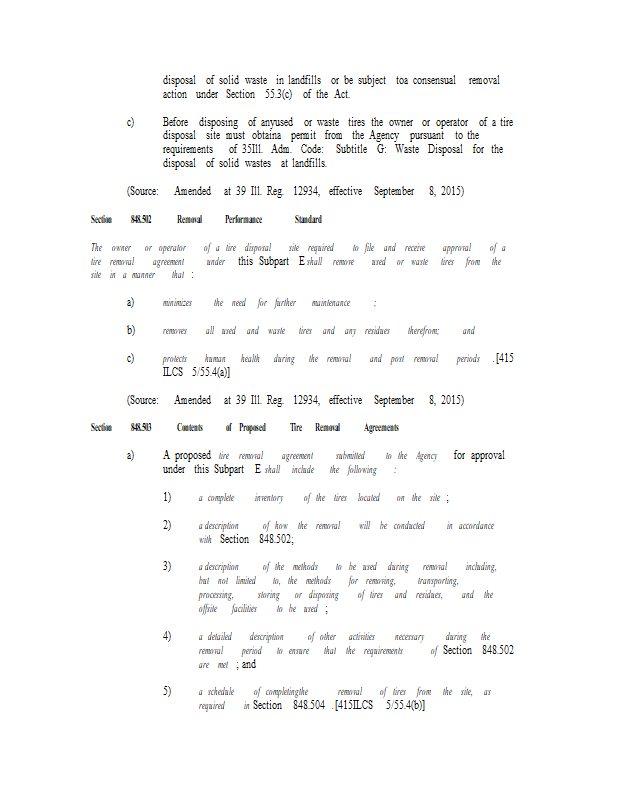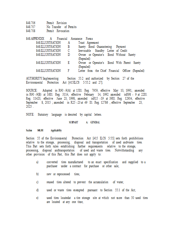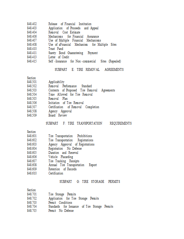 PART 848 - MANAGEMENT OF USED AND WASTE TIRES