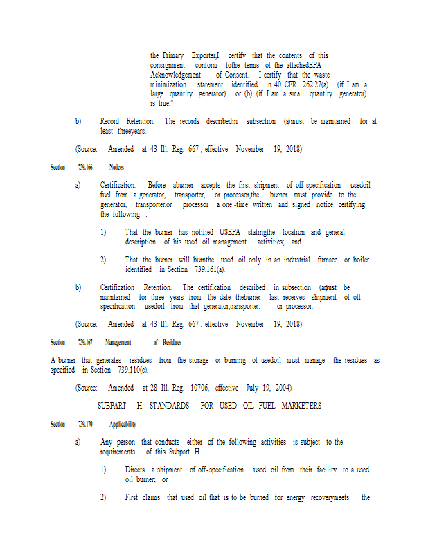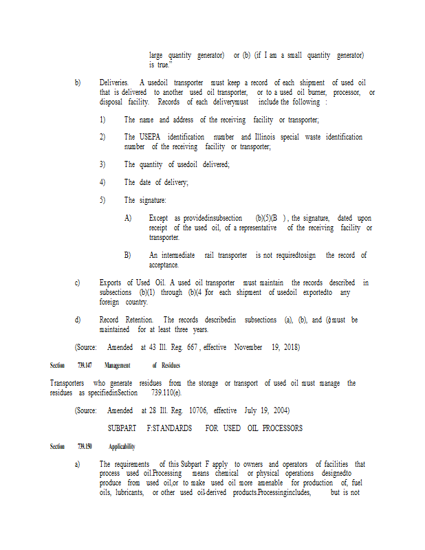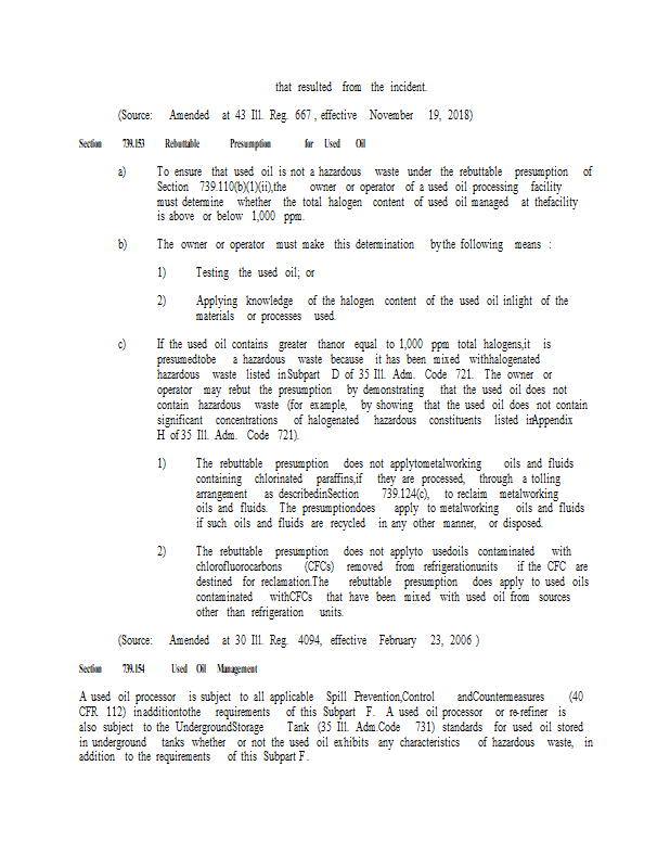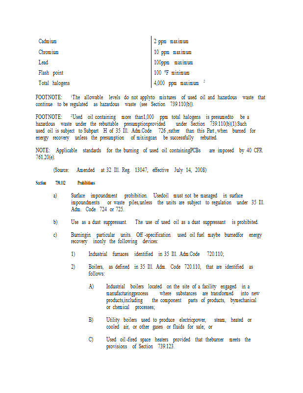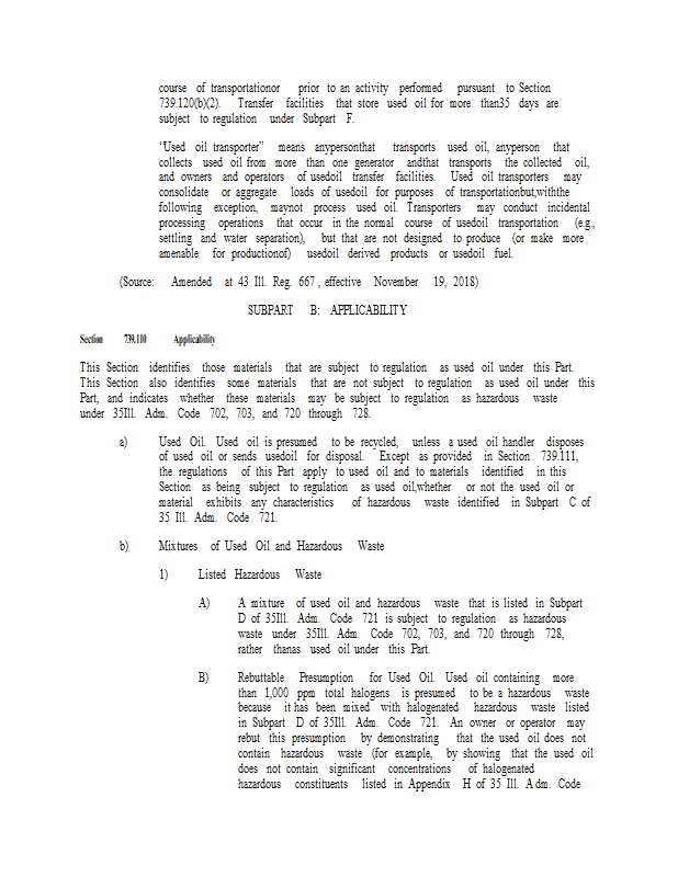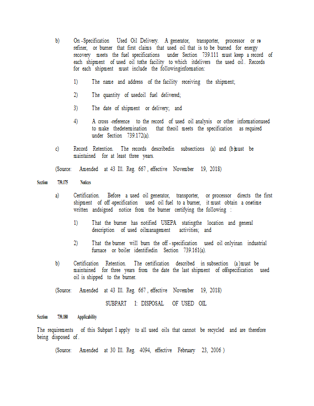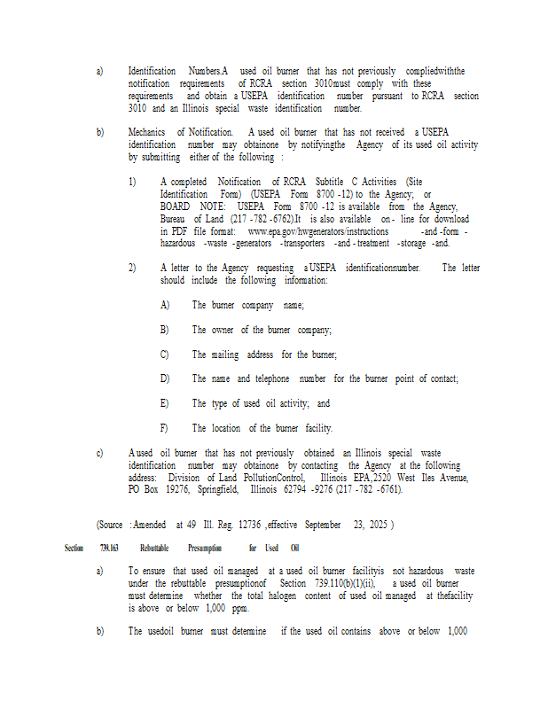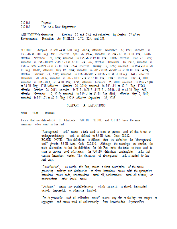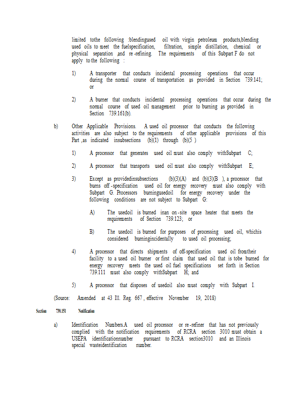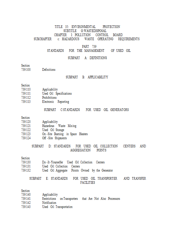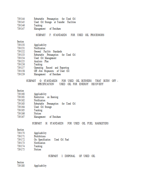 PART 739 - STANDARDS FOR THE MANAGEMENT OF USED OIL