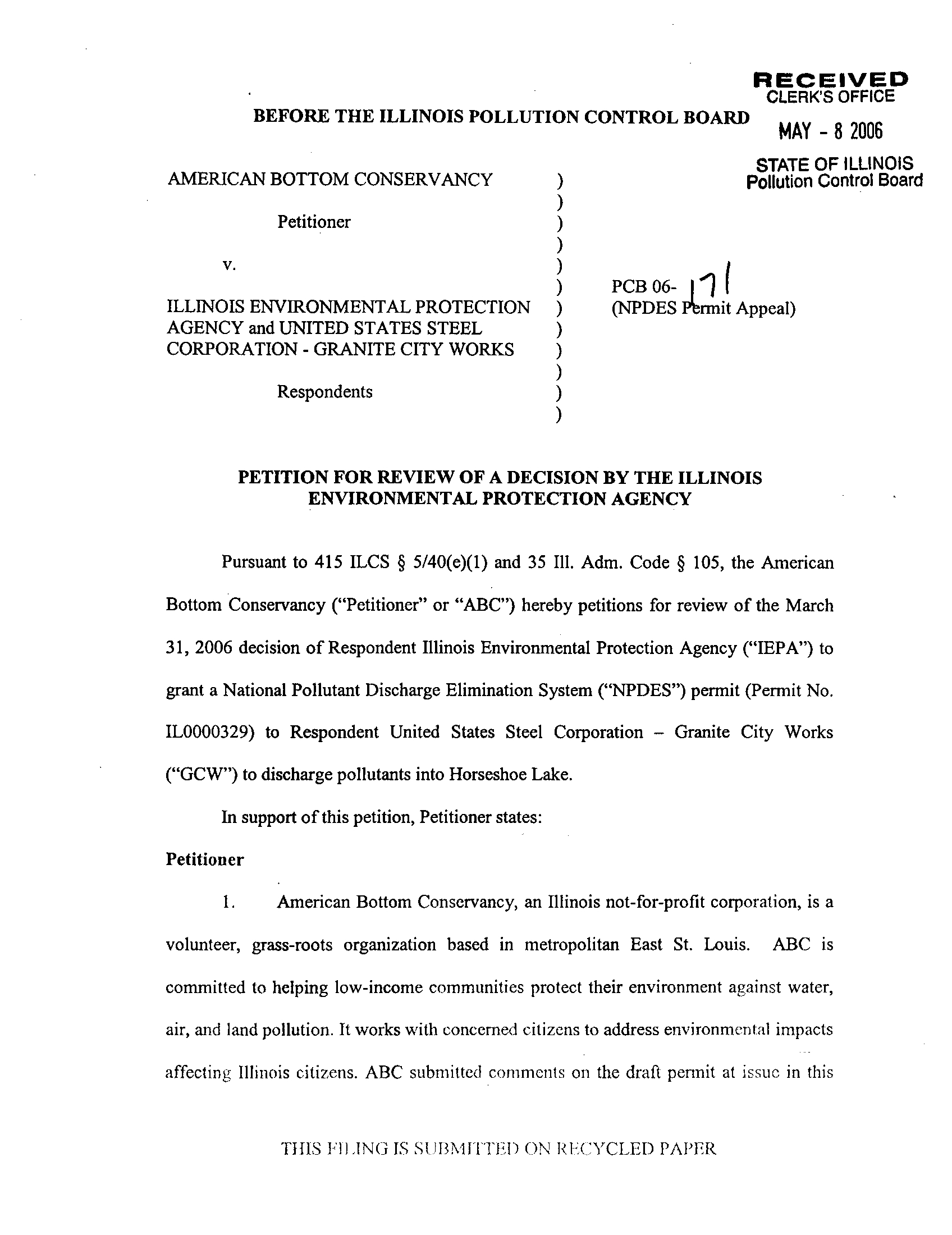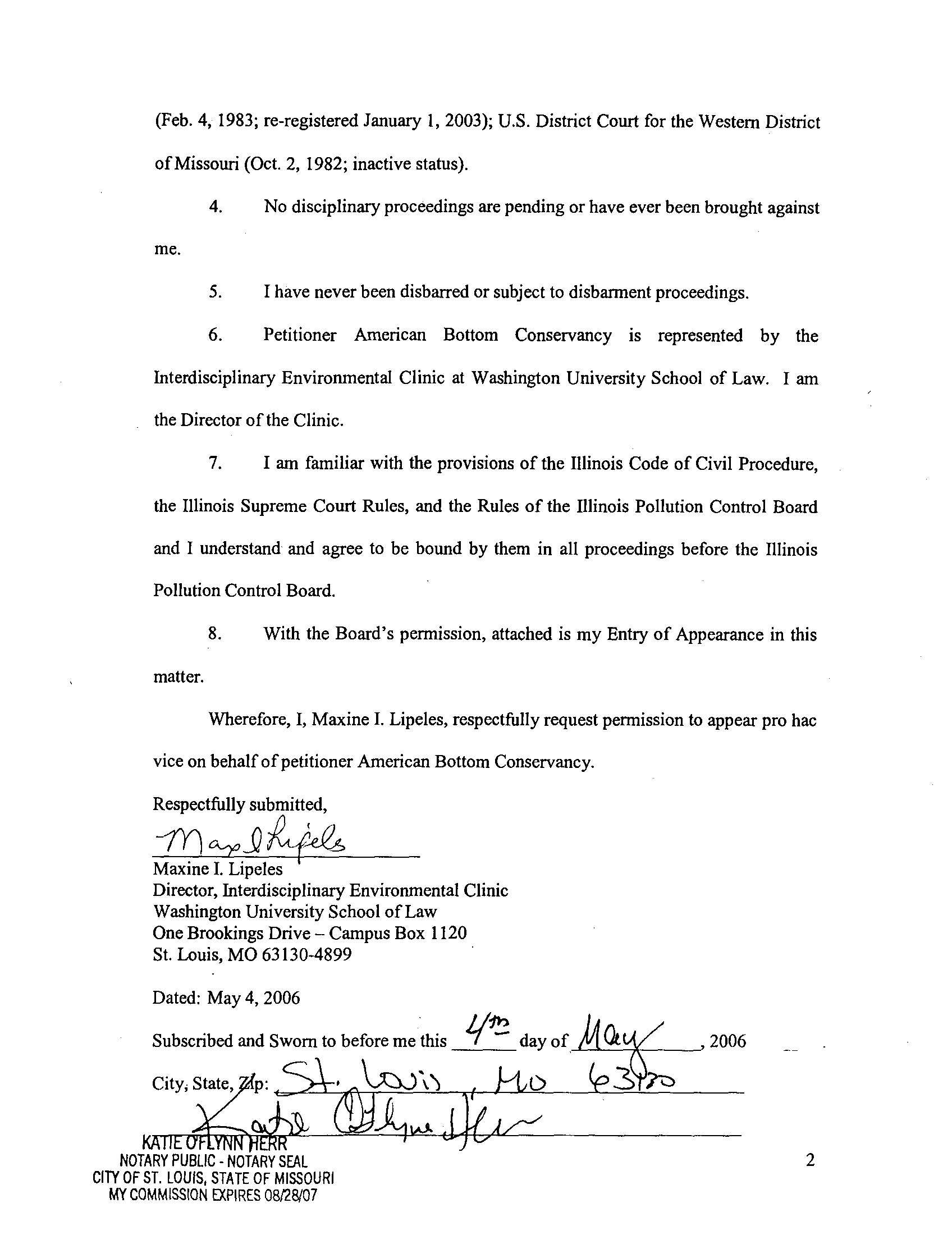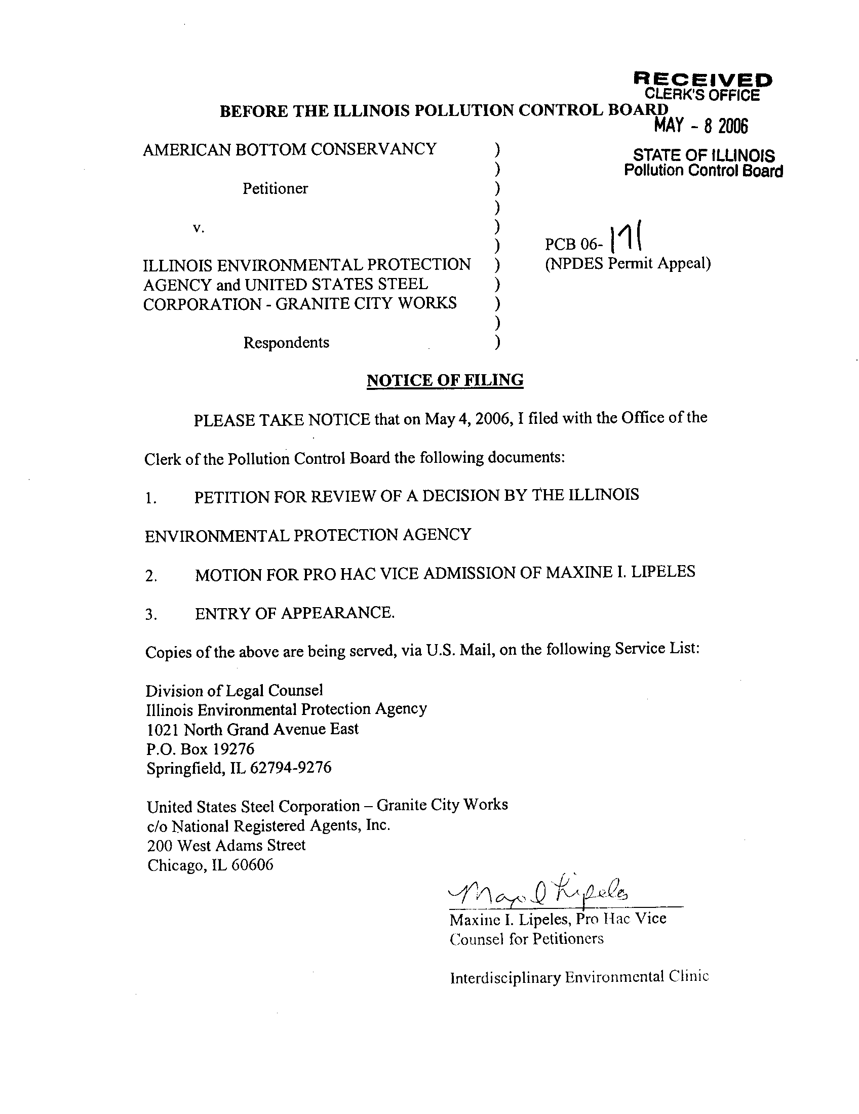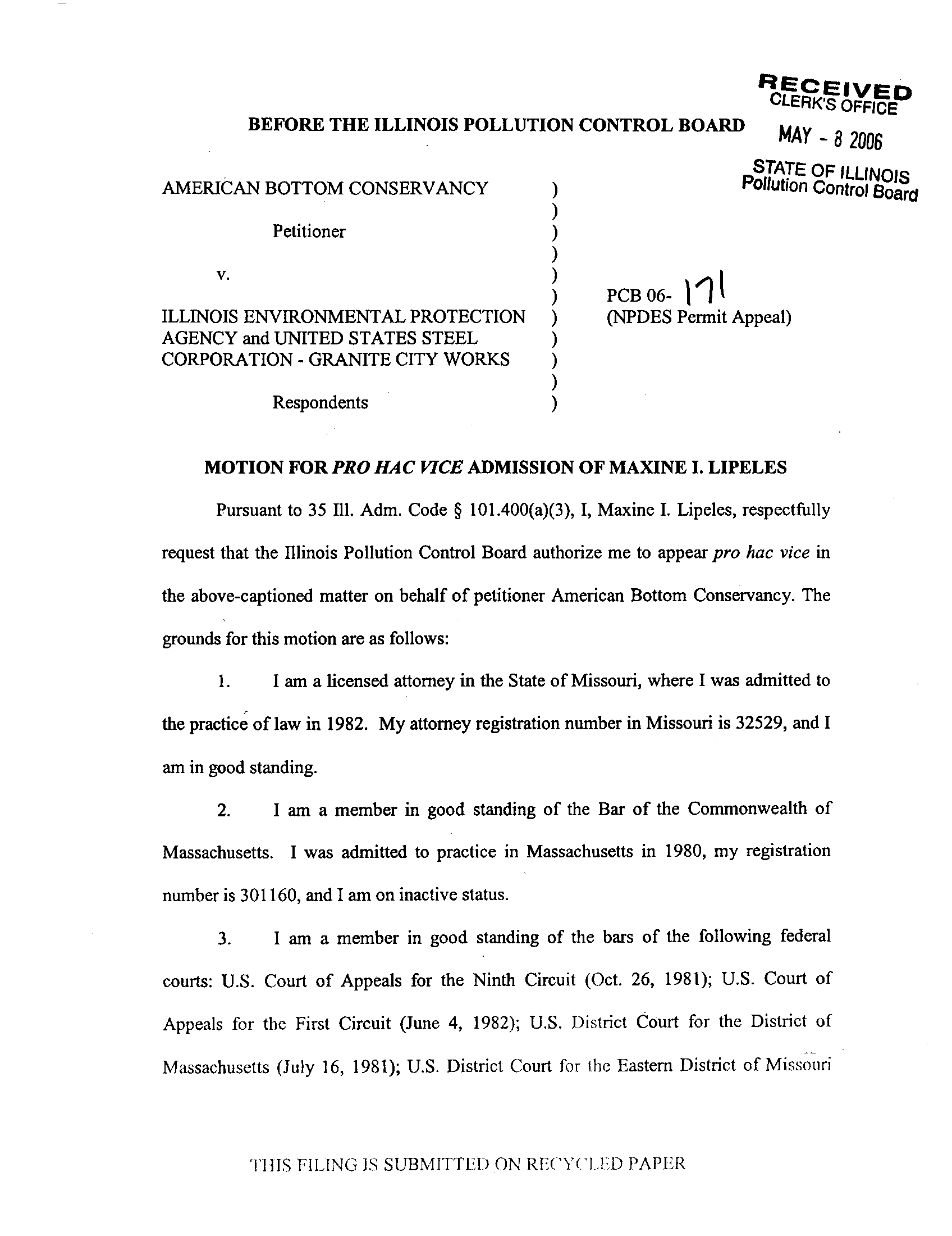 PCB 06-171,050806 PetnRvw, AprncJILMtnProHacVice.pdf