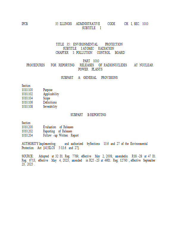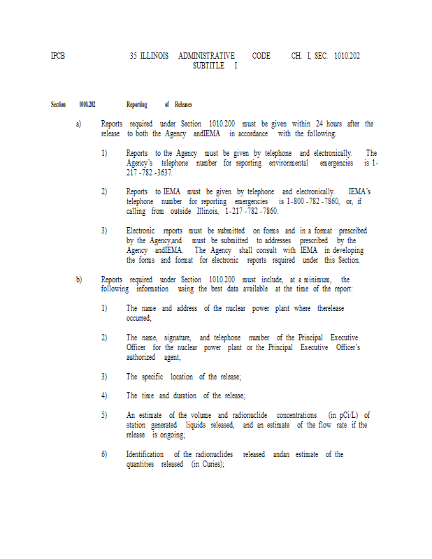 Version 2 PART 1010 - PROCEDURES FOR REPORTING RELEASES OF RADIONUCLIDES AT NUCLEAR POWER PLANTS