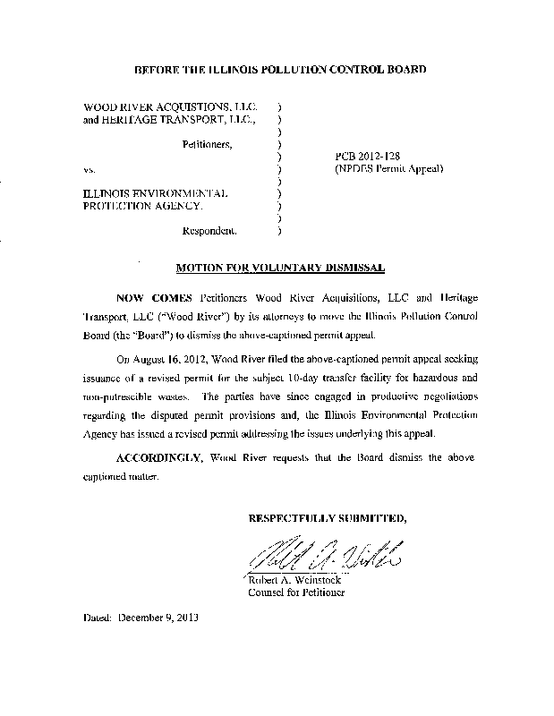 Version 1 PCB 12-128,120913Wood River Motion for Voluntary Dismissal